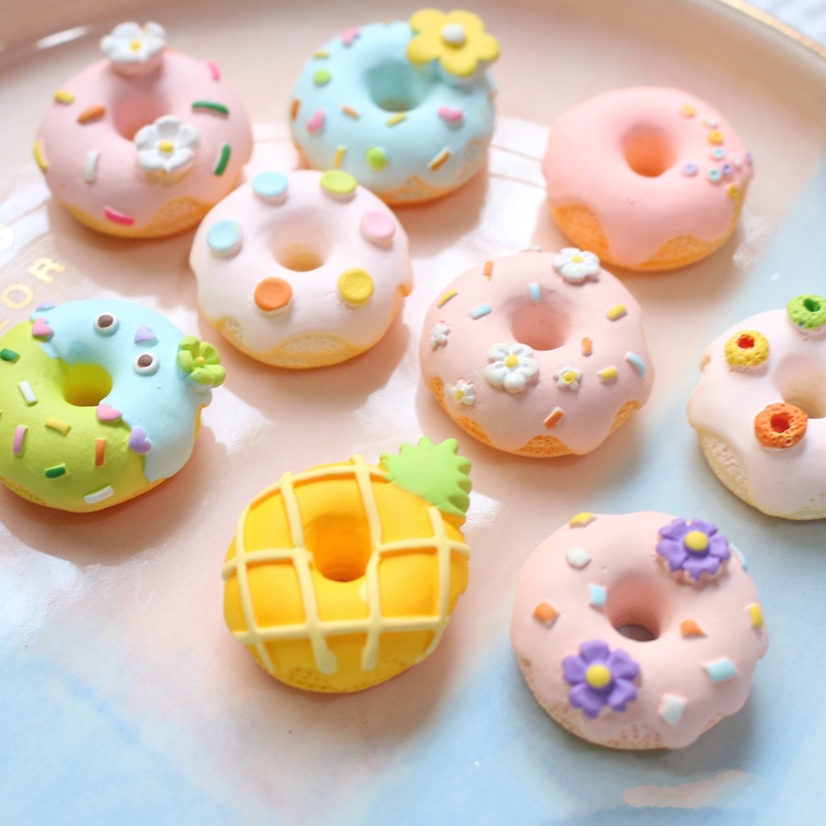 迷你仿真甜甜圈小摆件树脂假面包苔藓微景观造景桌面娃娃屋装饰
