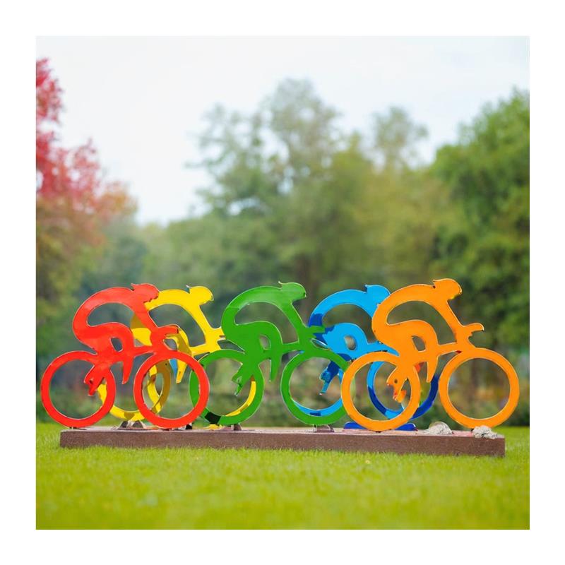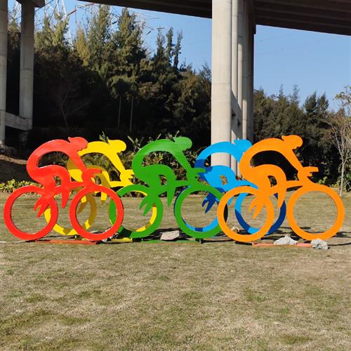 简约不锈钢人物雕塑学校体育公园公路标识自行车装饰美陈摆件定制