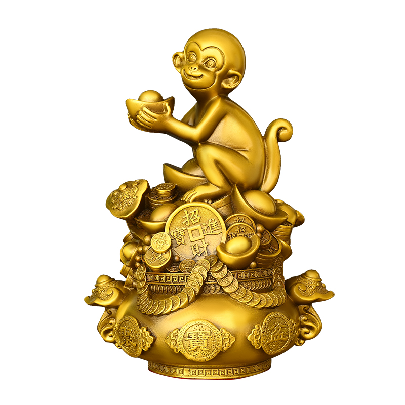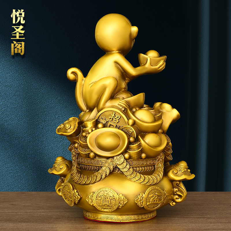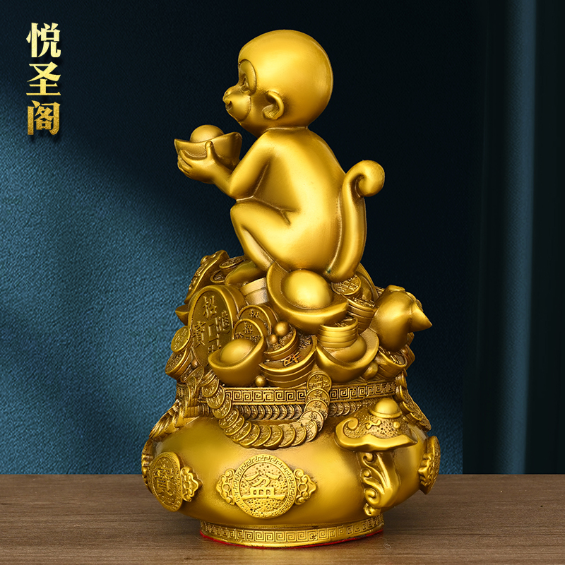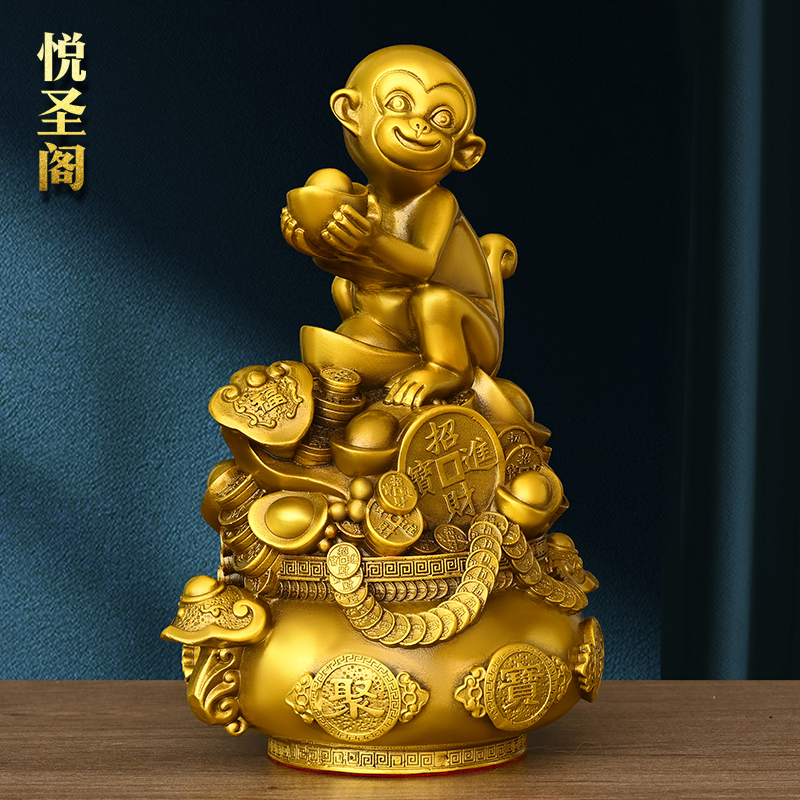 铜猴子摆件黄铜金猴献宝福猴客厅办公室桌面装饰礼品生肖猴聚宝猴