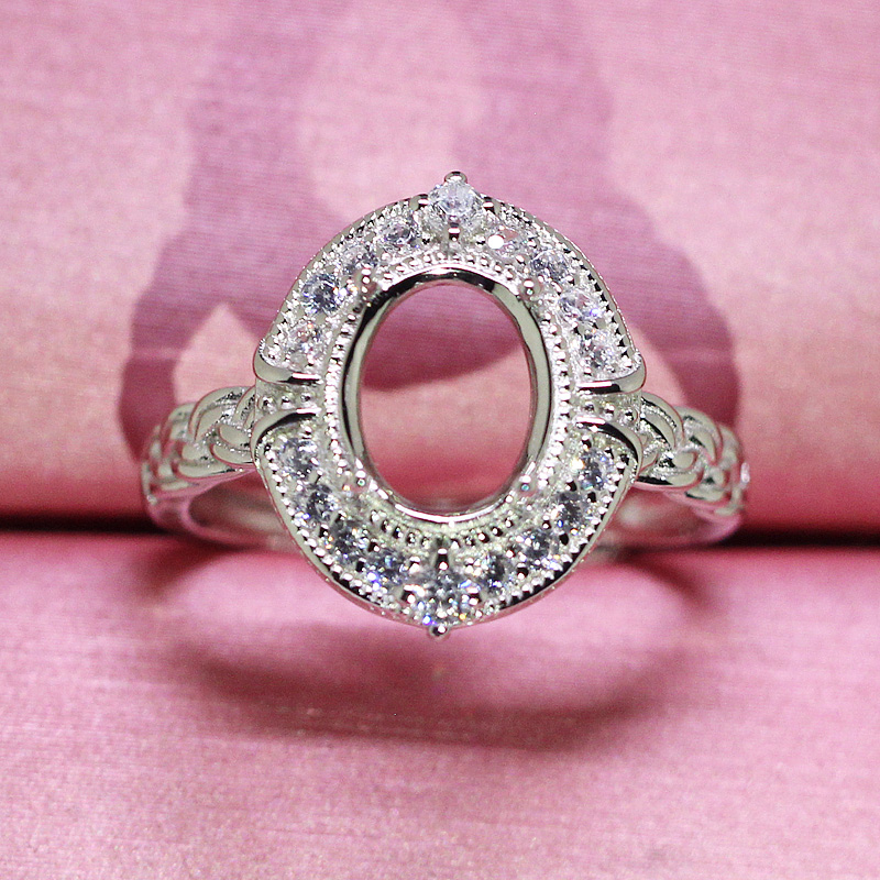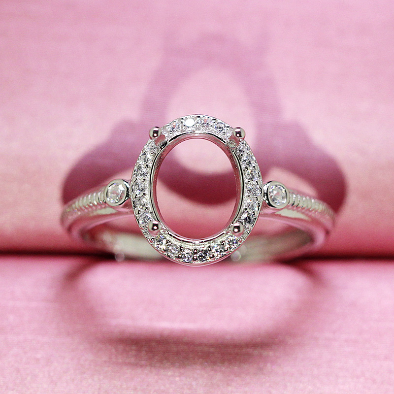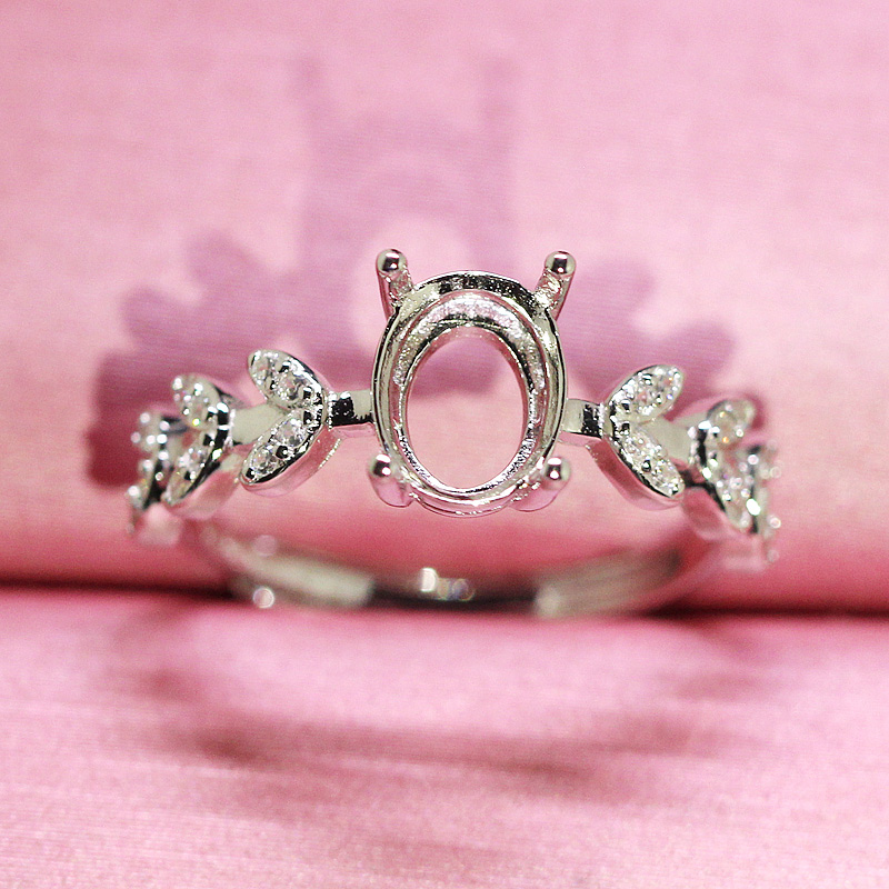 椭圆形冰花切雷迪恩戒托女戒指托空托厚底925纯银镀白金铂金活口