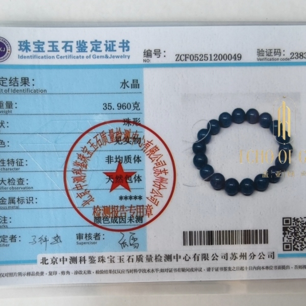 盖亚回声 7A级天然蓝线兔毛圆珠手链 蓝色细发晶散珠手串