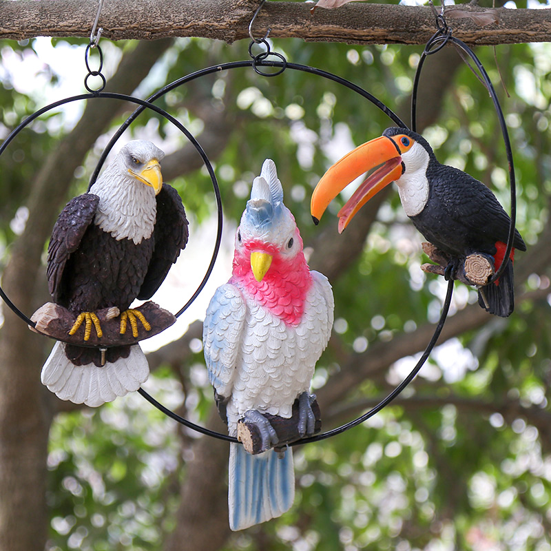 可爱彷真鸟鹦鹉假鸟摆件入户花园装饰道具造景树脂工艺品挂件