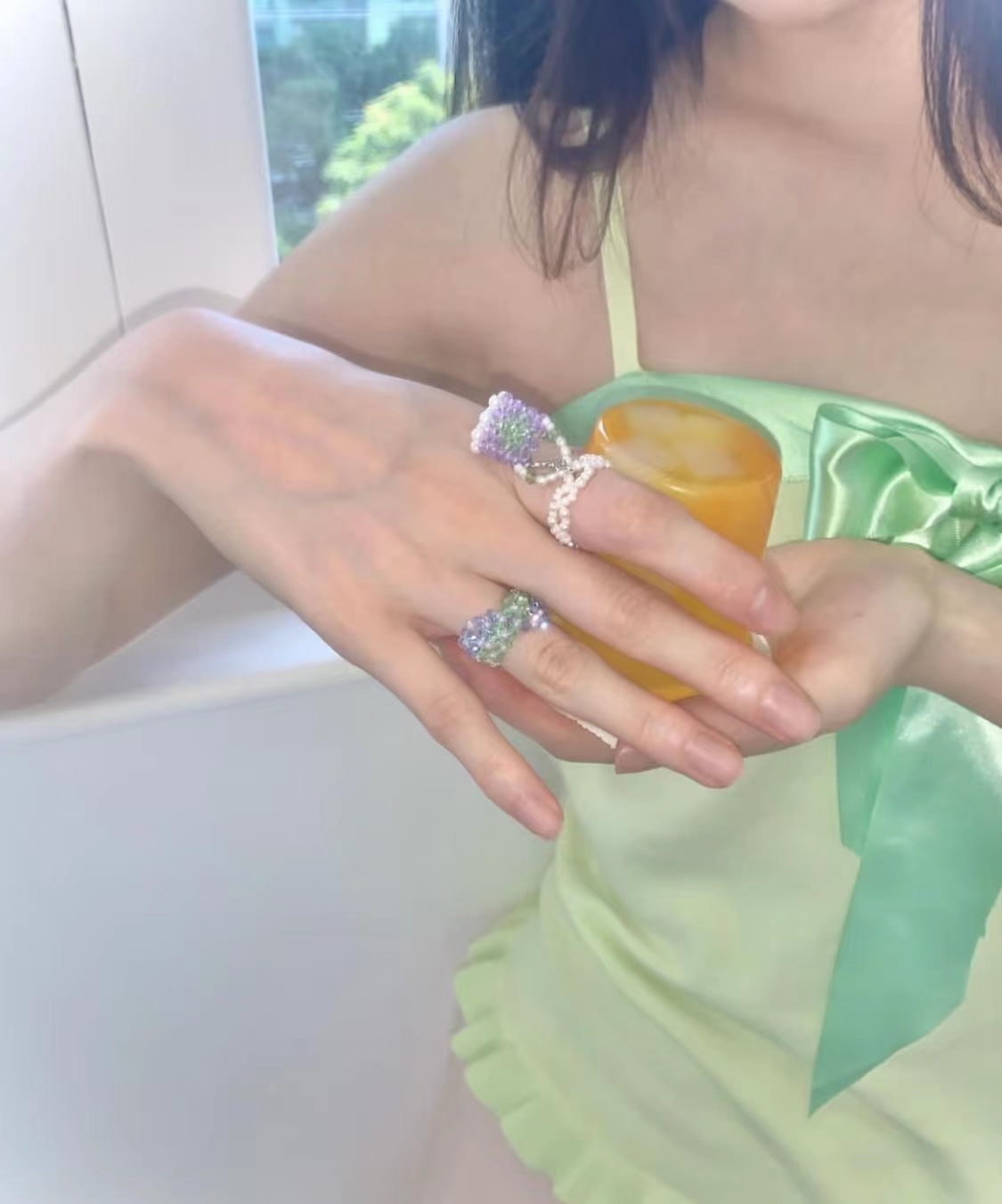 Love Bag Beads Ring甜妹爱心包包造型水晶串珠戒指swingset同款