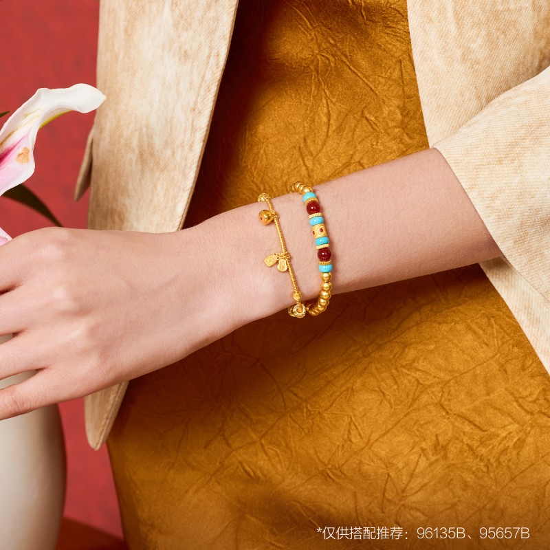 周生生华宇古法黄金足金玉髓绿松石圆珠手串手链95657B计价