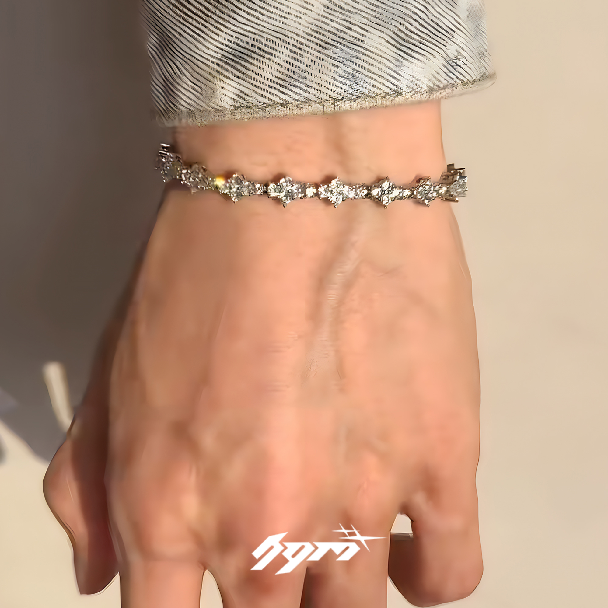 六芒星闪钻锆石手链男荆棘镶钻链痞帅嘻哈潮酷高级感满钻链子女