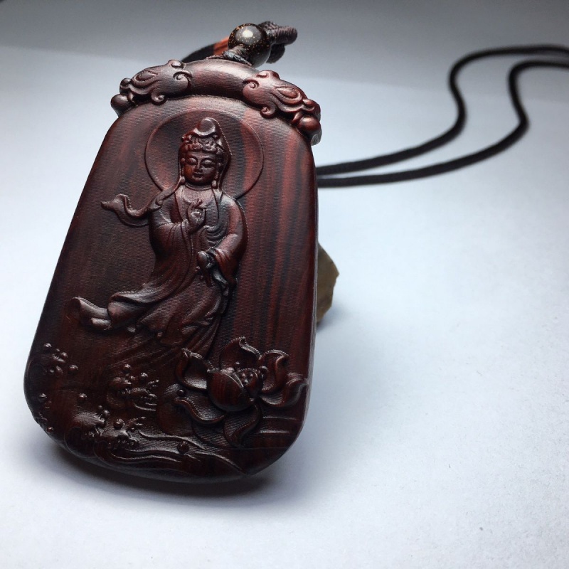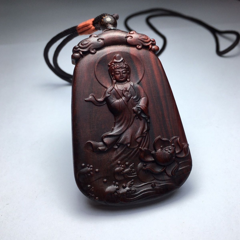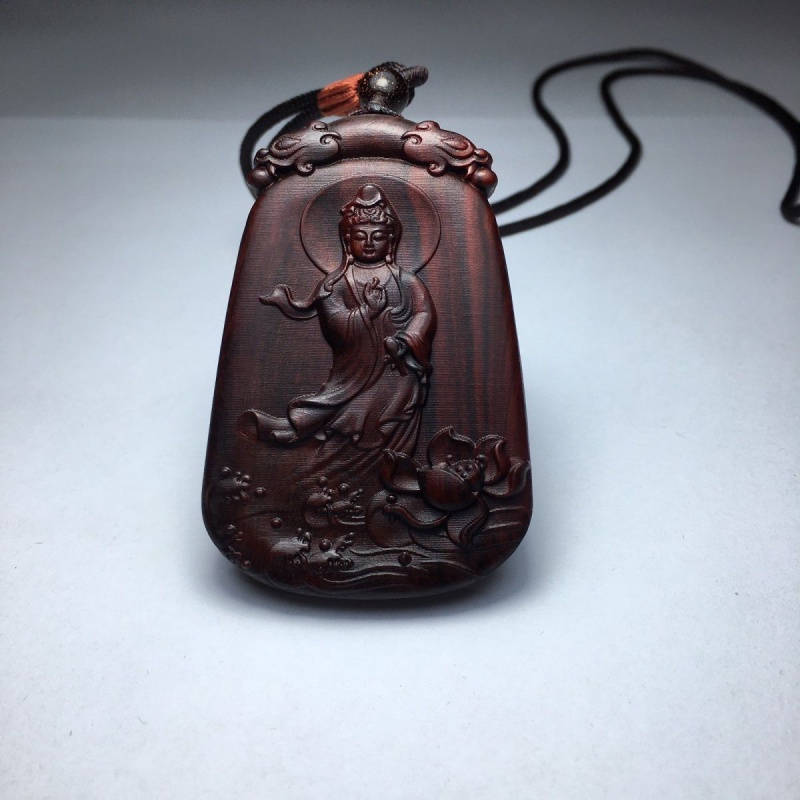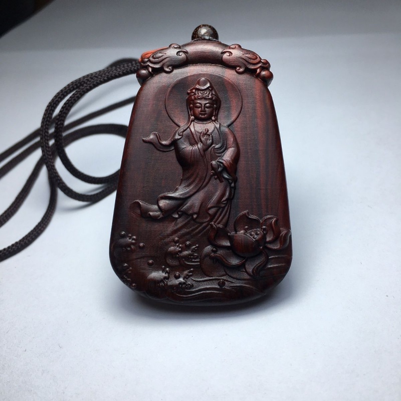 小叶紫檀雕刻观音菩萨实木木牌平安牌木挂件普渡众生随身饰品吊坠