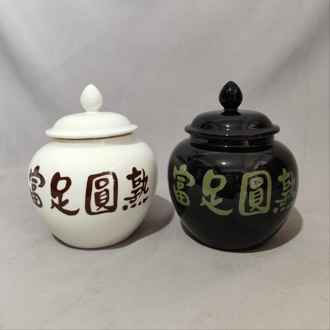 小号700ml富足圆熟白色罐咖啡色字白咖易经聚宝盆 道学陶瓷罐摆件