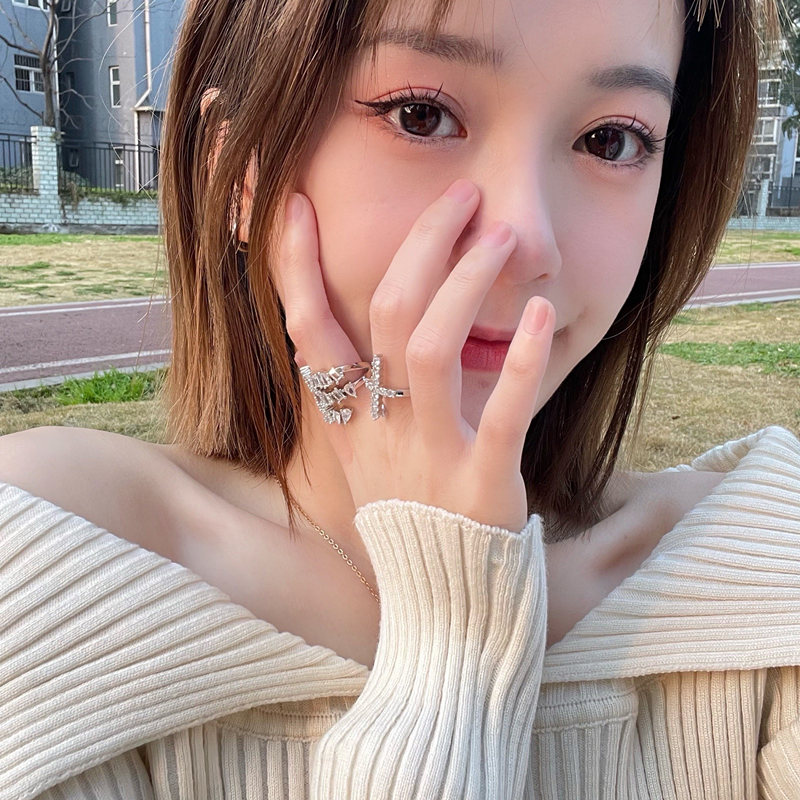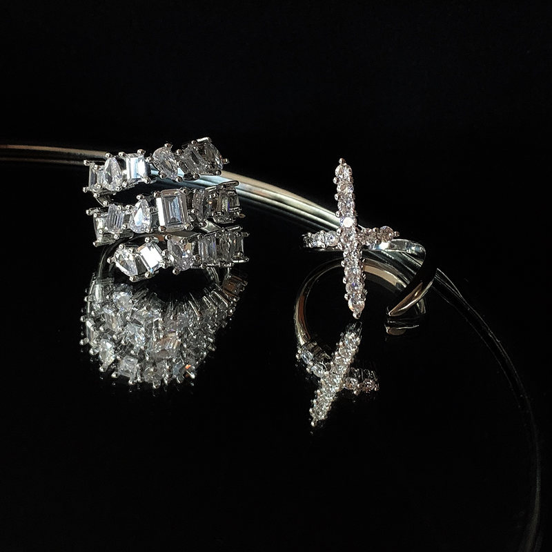 强推!超闪镶钻三层戒指女个性夸张ins小众高级感轻奢十字架食指环