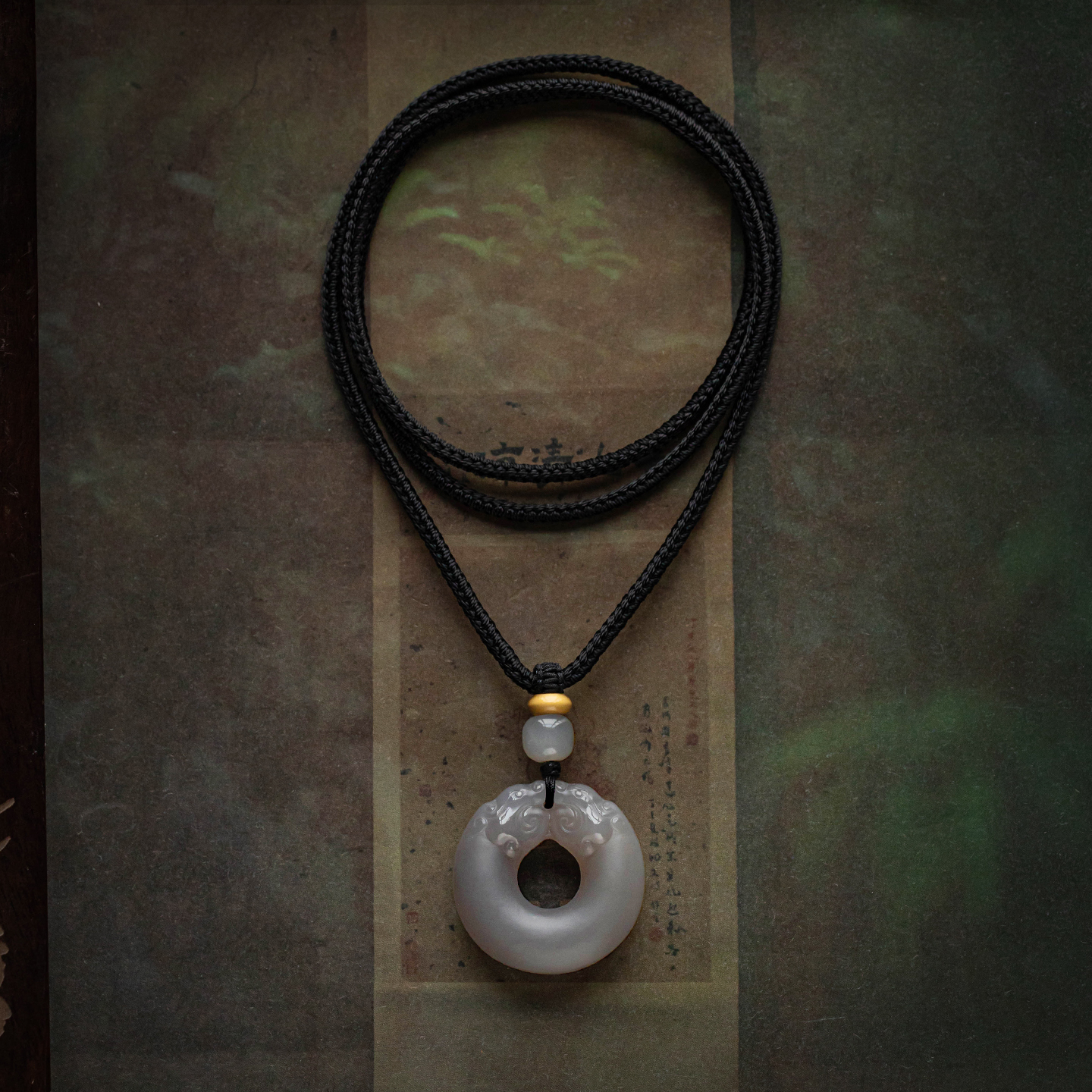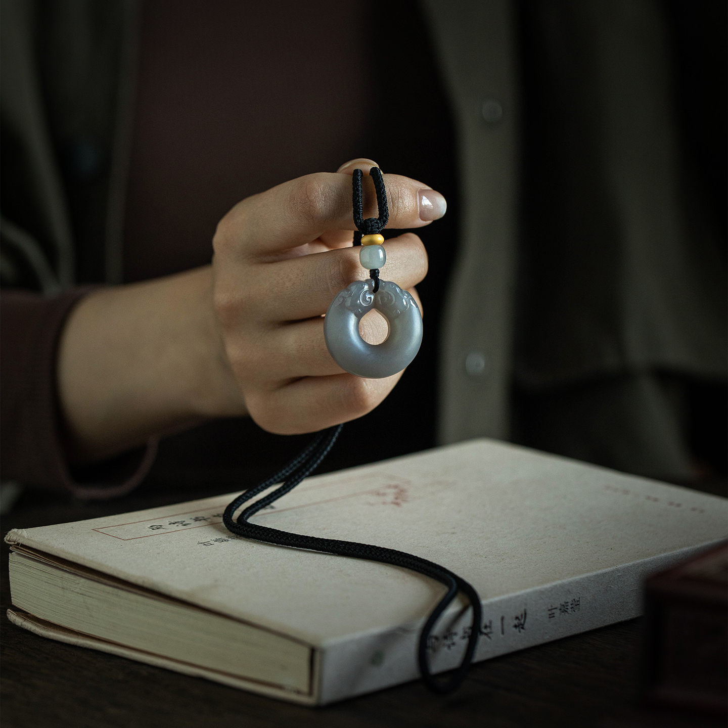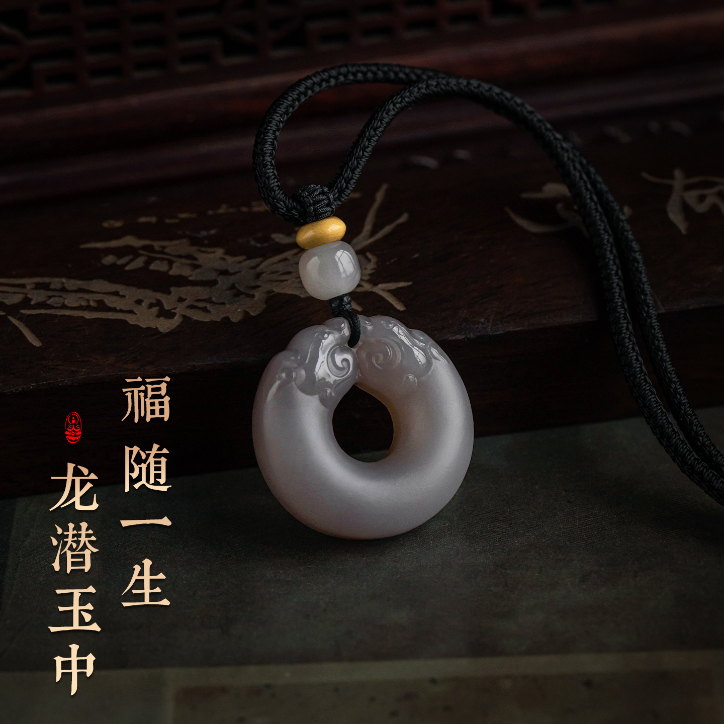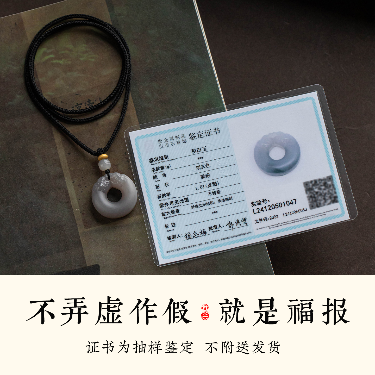 【孤品】天然精选和田玉平安扣吊坠祥龙烟灰色项链男女精致高档礼