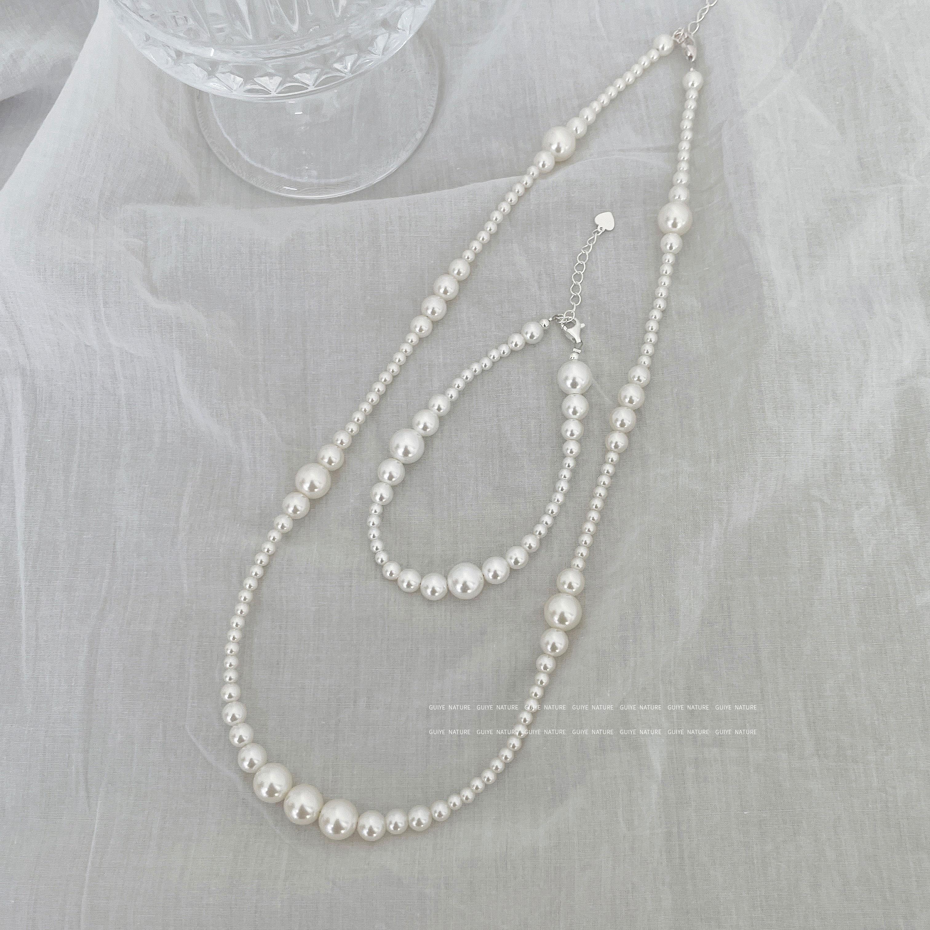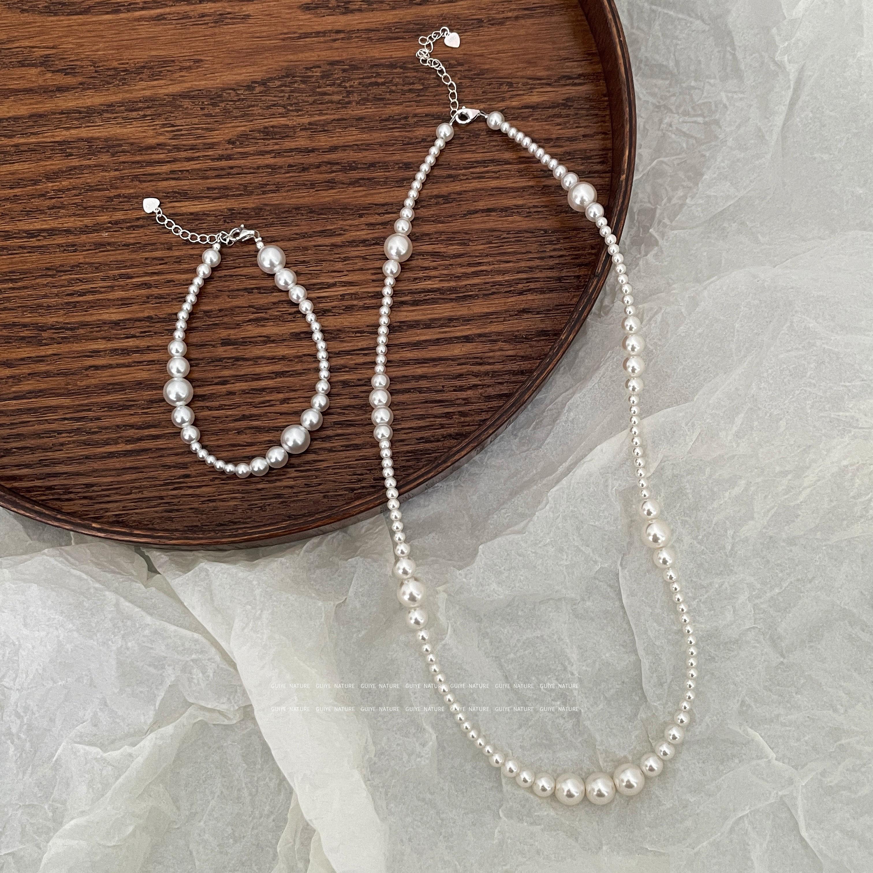 925纯银施家珍珠项链女轻奢小众锁骨链法式叠戴高级感毛衣链手链