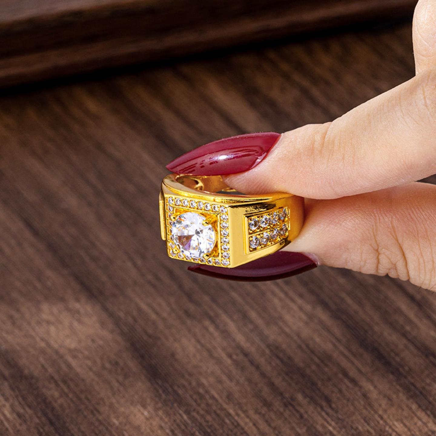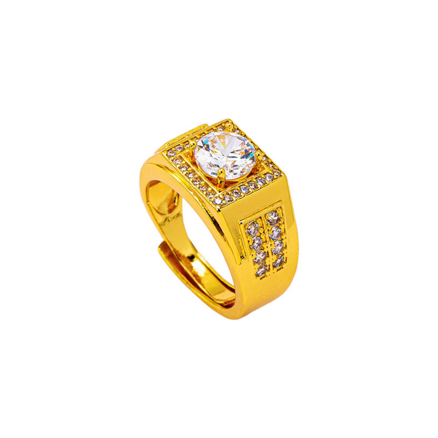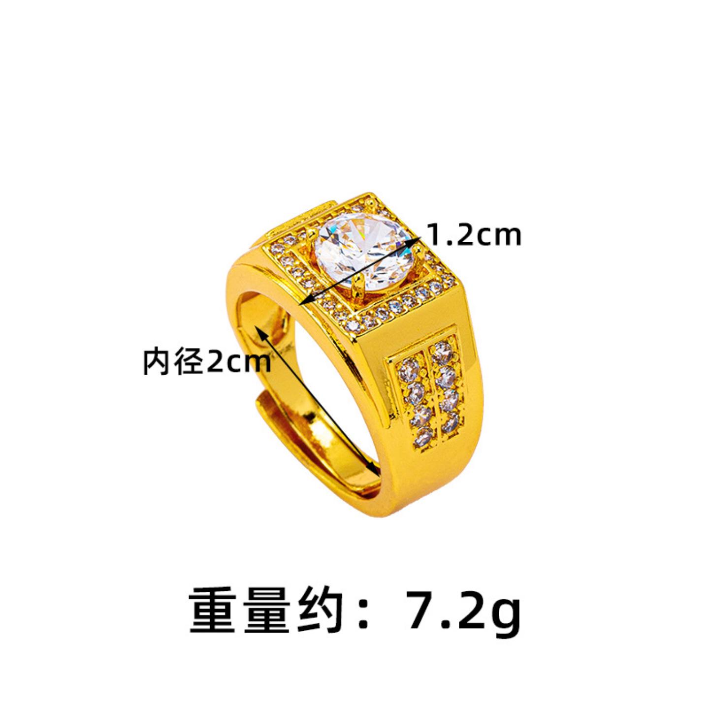 爆款轻奢风方形开口戒指男女款越南沙金镶锆食指戒百搭仿金色饰品