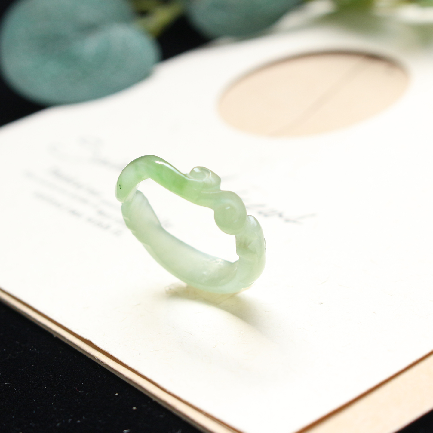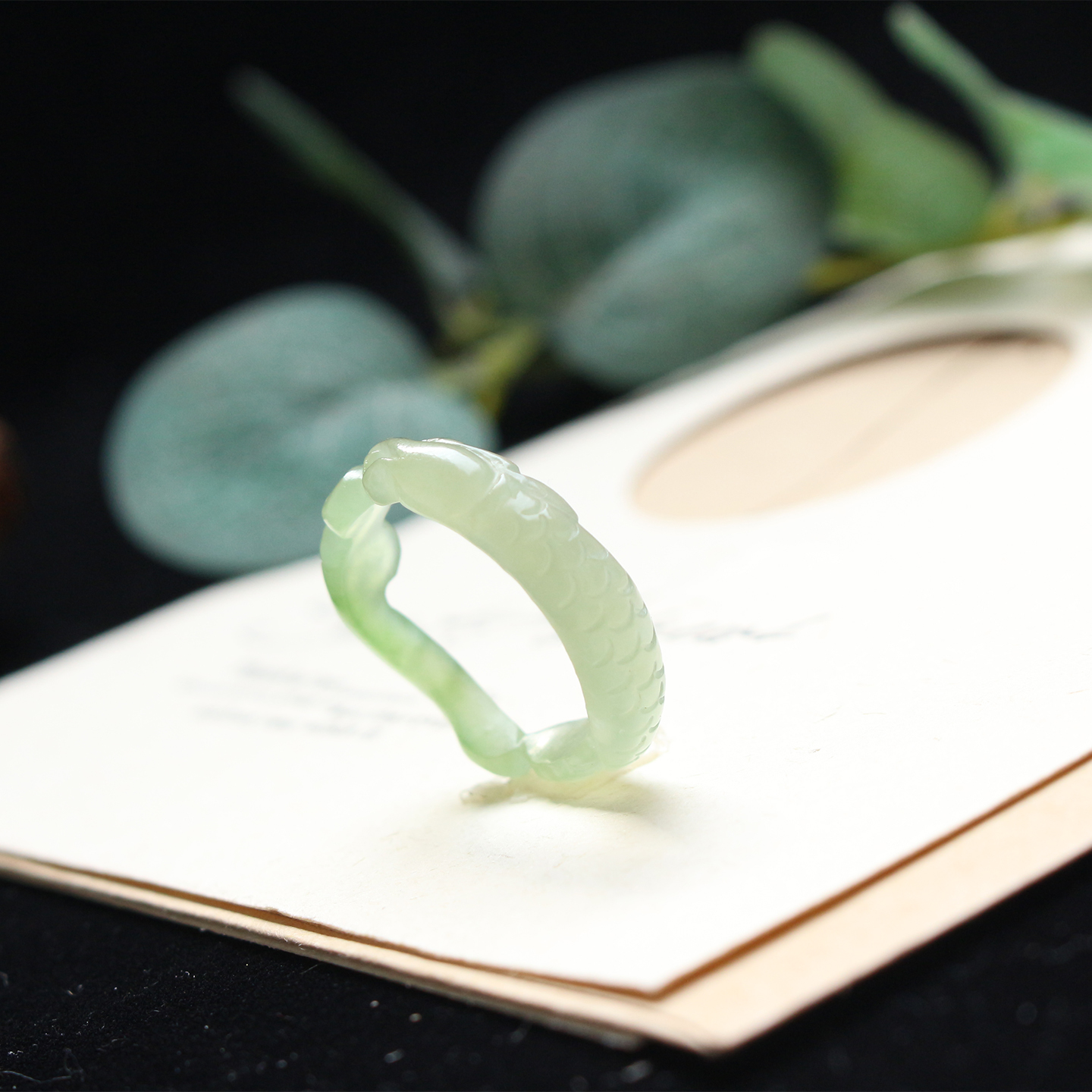 新款原创和田玉碧玉龙戒指白加绿如意指环男女款19mm玉戒可定制