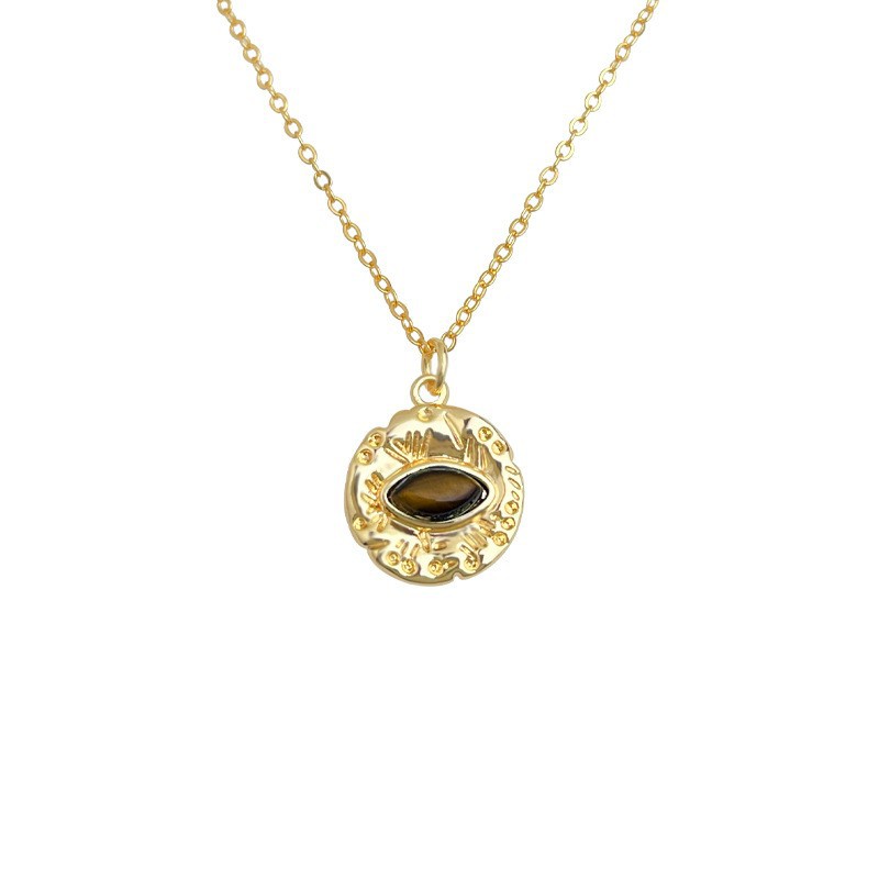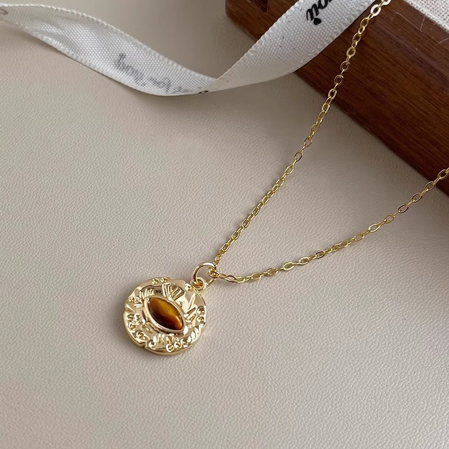 简约厚镀真金文艺复古几何虎眼石项链美拉德风轻奢百搭感锁骨链女