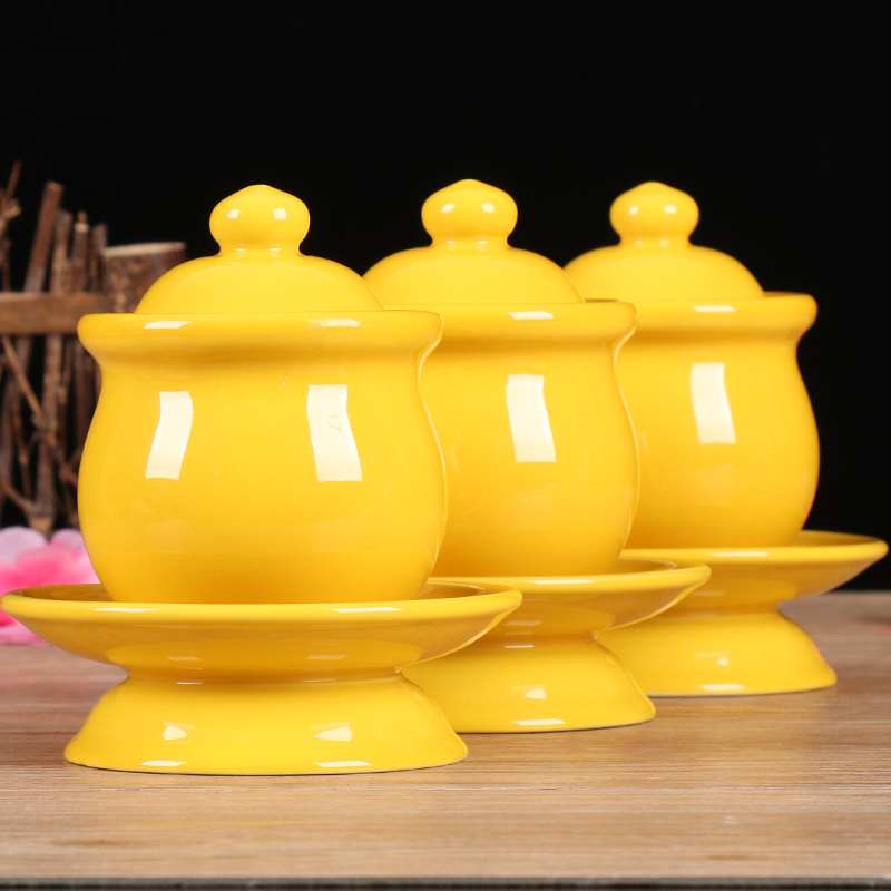陶瓷供水杯堂前供杯纯黄家用室内招财茶杯酒杯供水杯贡品摆件用品