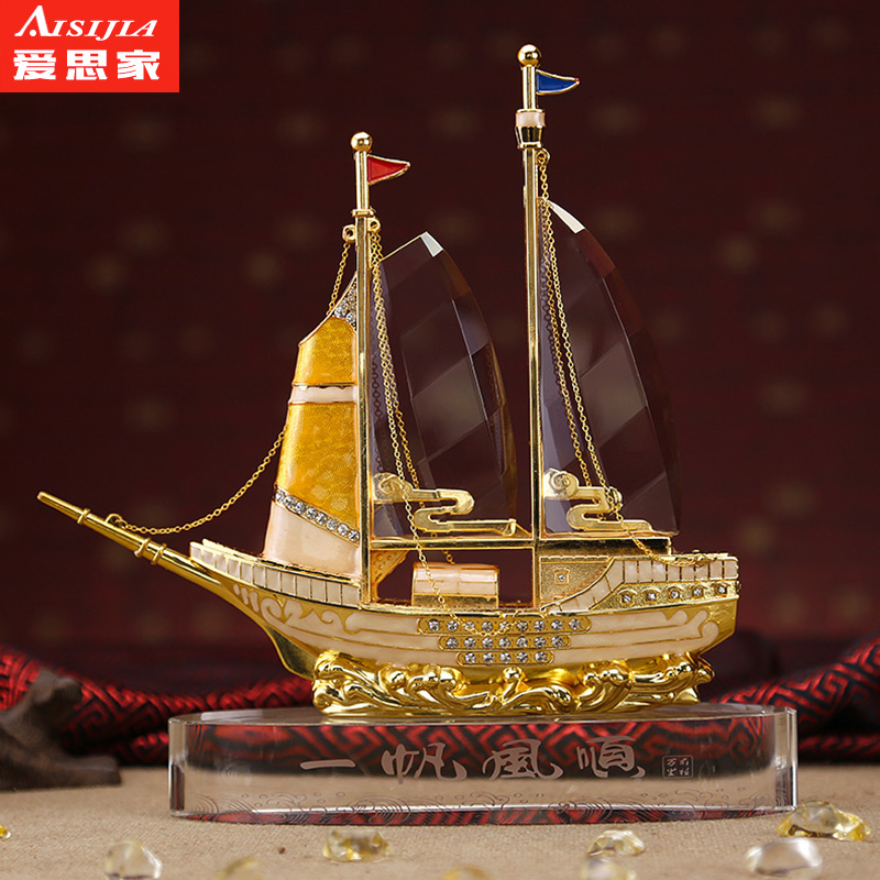 现货速发水晶帆船摆件一帆风顺创意纪念品送战友老兵聚会留念摆件