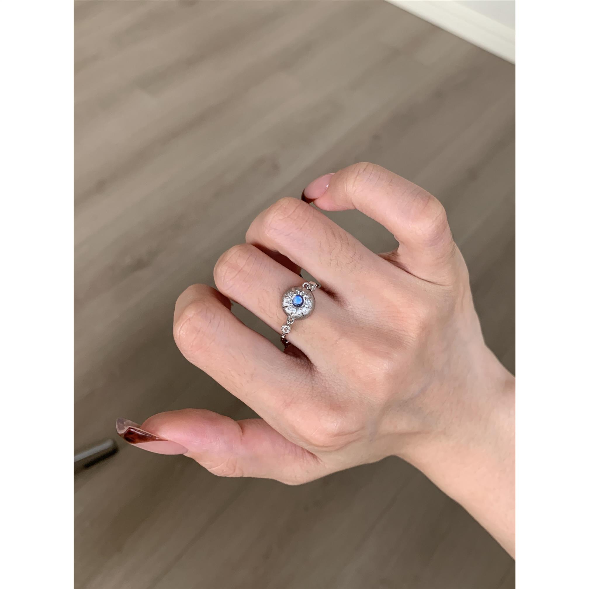 银色拉丝星芒豆豆戒指女调节抽拉式指环轻奢高级感小众设计食指戒