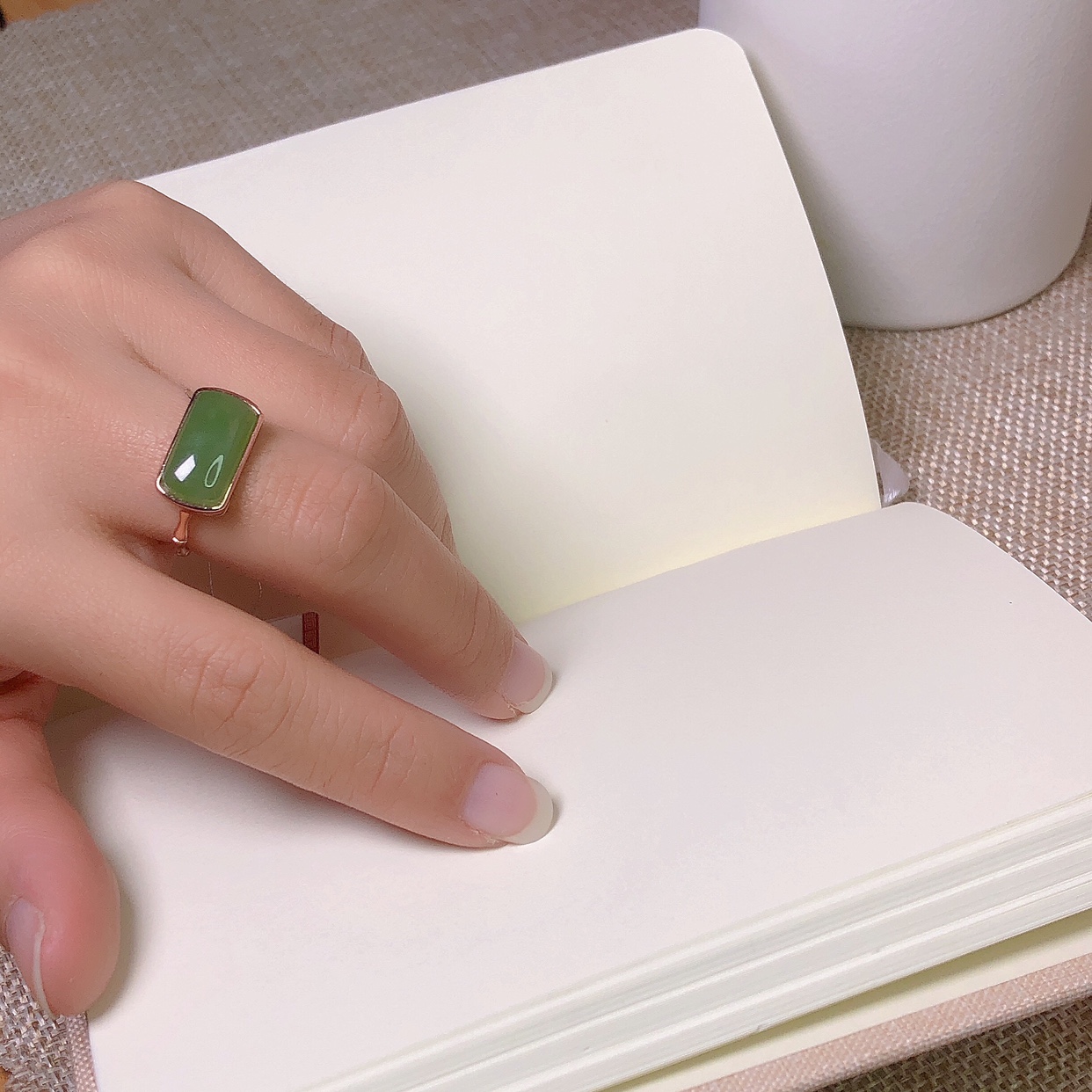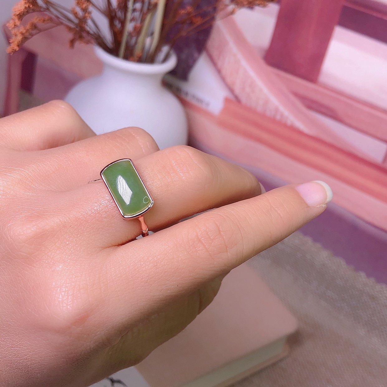 925银和田玉戒指 碧玉女款马鞍戒指环 天然玉石礼品 a货附证书