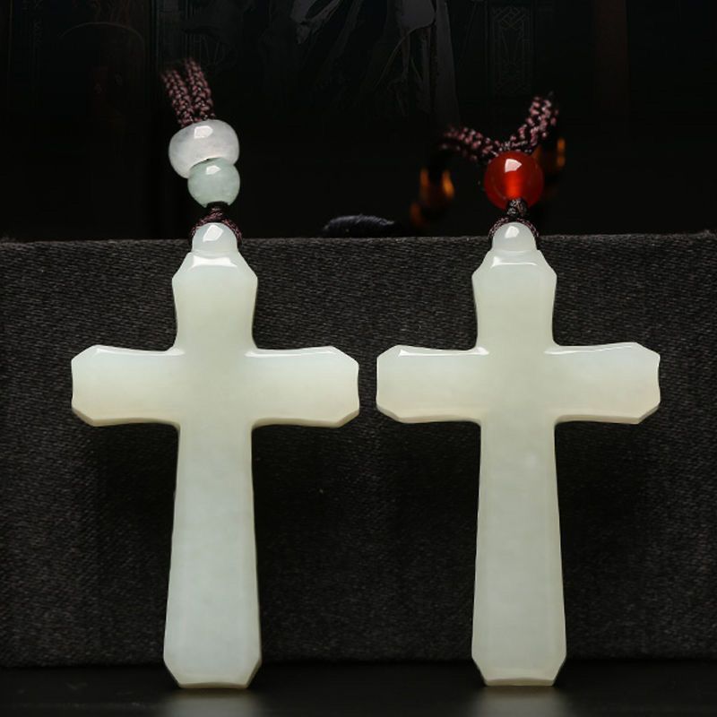 正品新疆十字架青白色吊坠男女款天然十字架项链吊坠挂件玉石