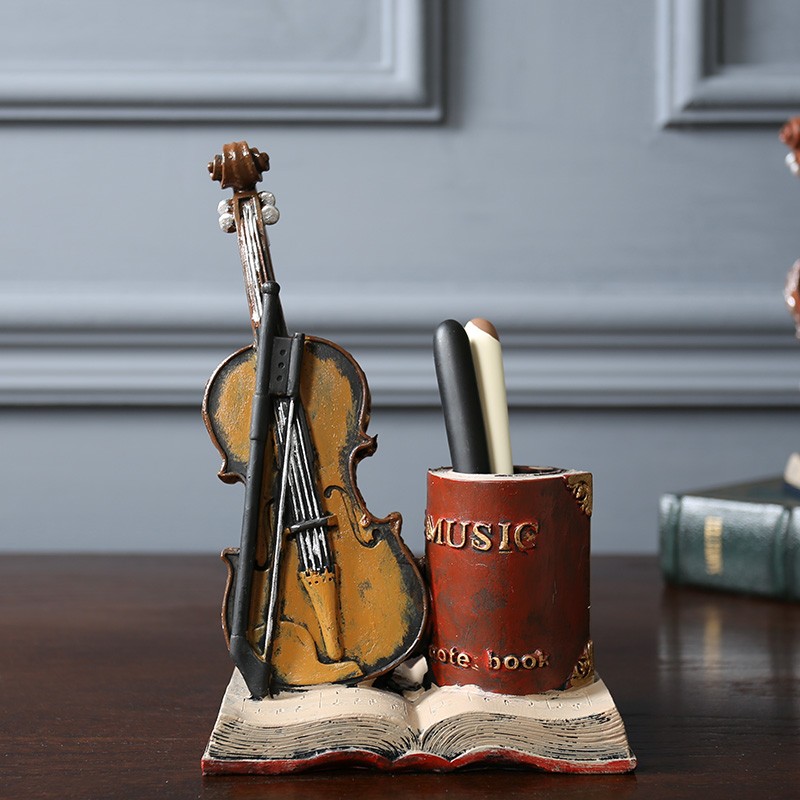 北欧复古创意个性时尚小提琴收纳笔筒办公室桌面装饰摆件笔架礼物