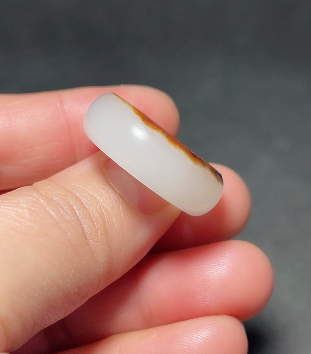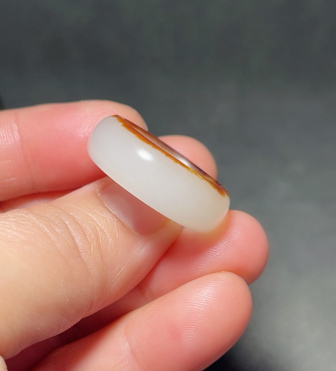 天然新疆和田玉白玉红皮籽玉戒指20 克