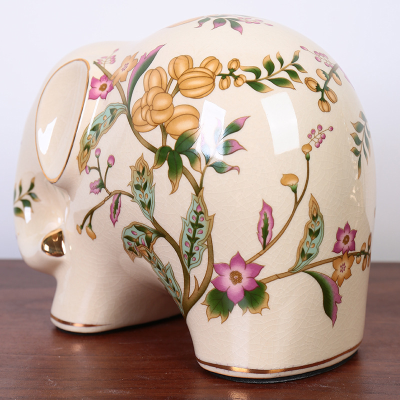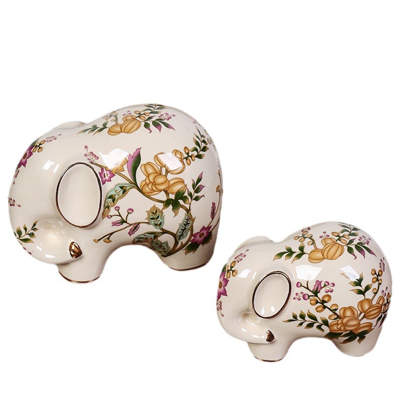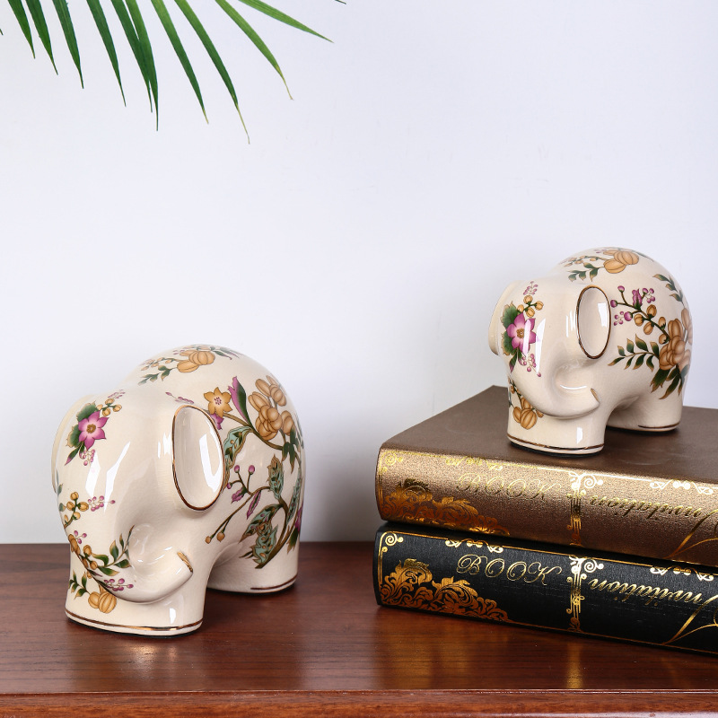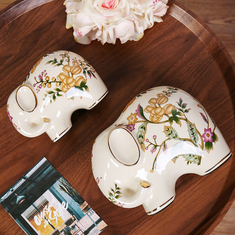 陶瓷大象轻奢复古美式招财客厅装饰品电视柜一对桌面玄关高级摆件