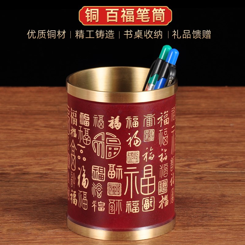 全铜笔筒摆件创意桌面摆设招财中式家居书房办公室装饰商务礼品