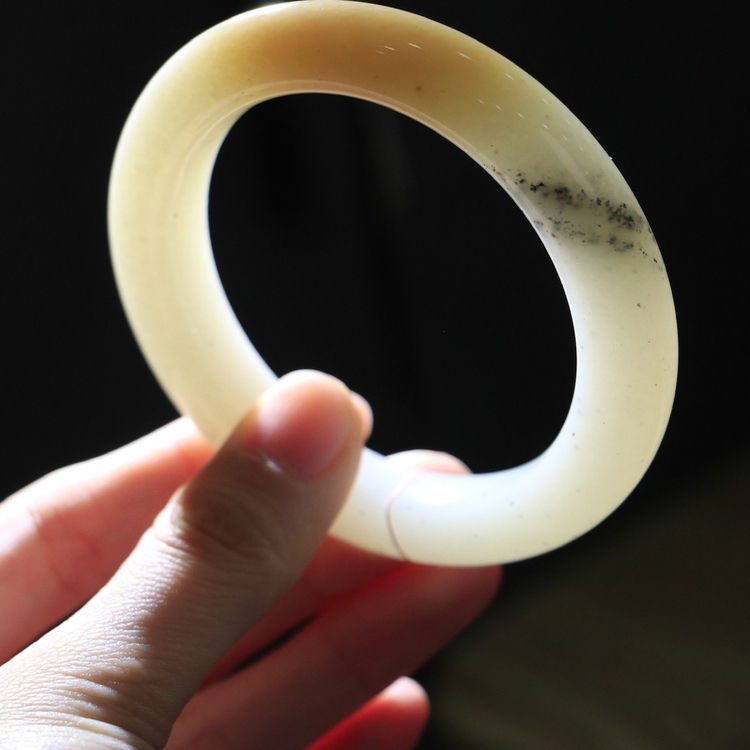 天然新疆和田玉且末糖白玉58.2圈口手镯大气典雅古风男女手饰收藏