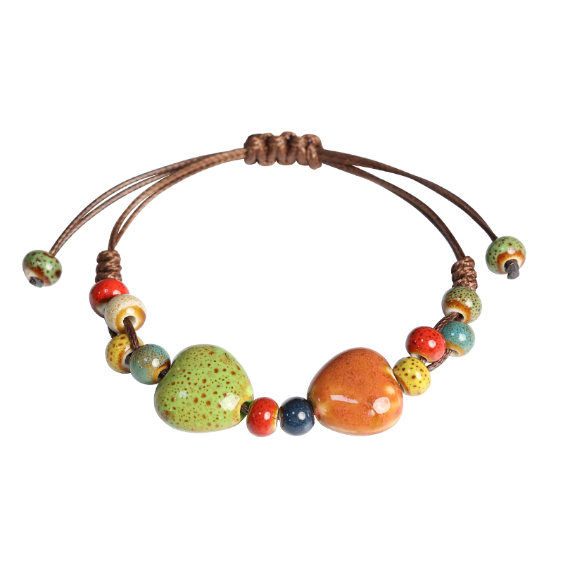 景德镇陶瓷串珠瓷珠手链花釉爱心手串女编织手绳情侣闺蜜学生手饰