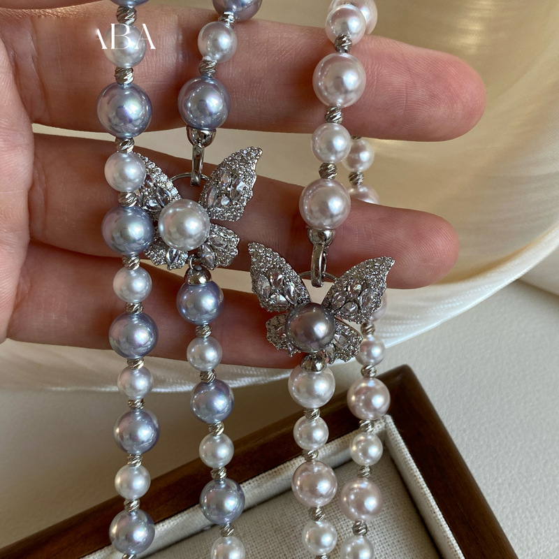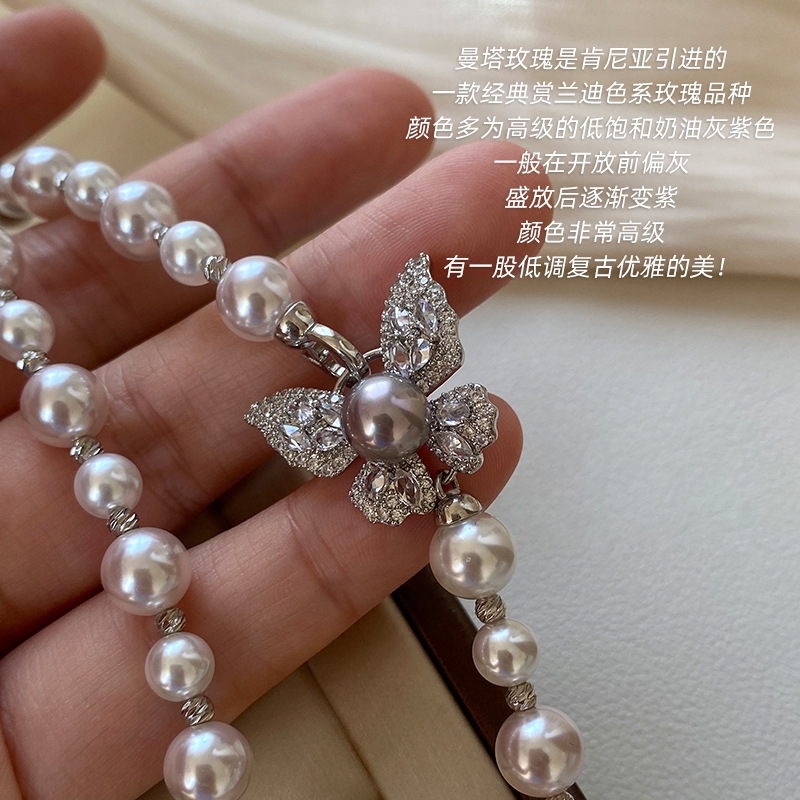 曼塔玫瑰蝴蝶珍珠项链秋冬长款串珠毛衣链高级感百搭轻奢配饰品