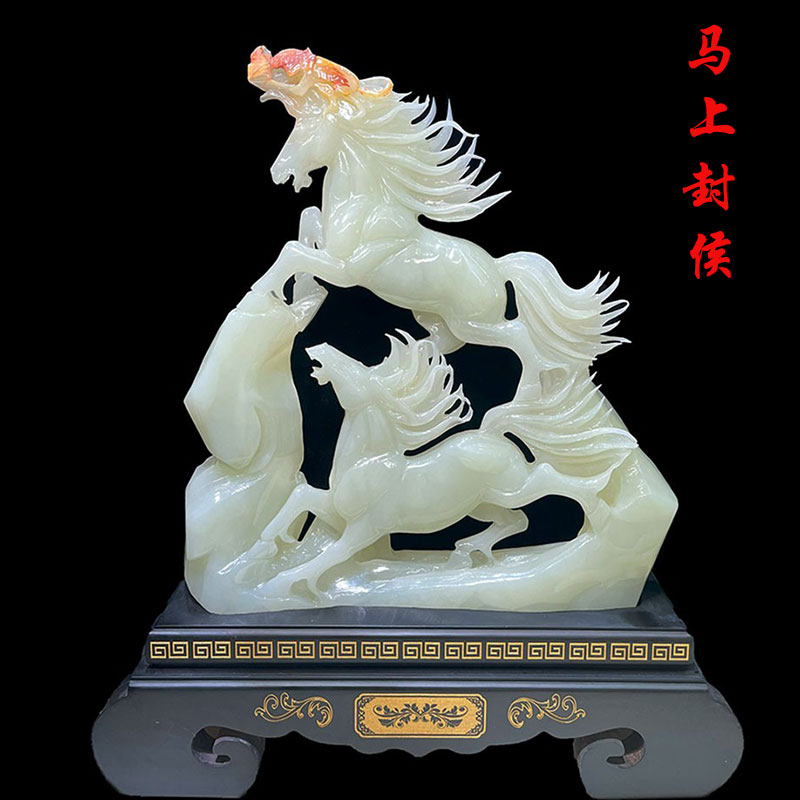 玉石马上封侯摆件工艺装饰中式客厅玄关办公室老板桌祝福送礼领导