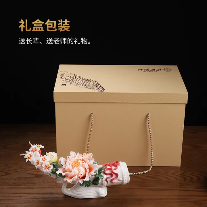 东方泥土《平安富贵》新中式手工牡丹瓷花摆件客厅办公室酒店装饰