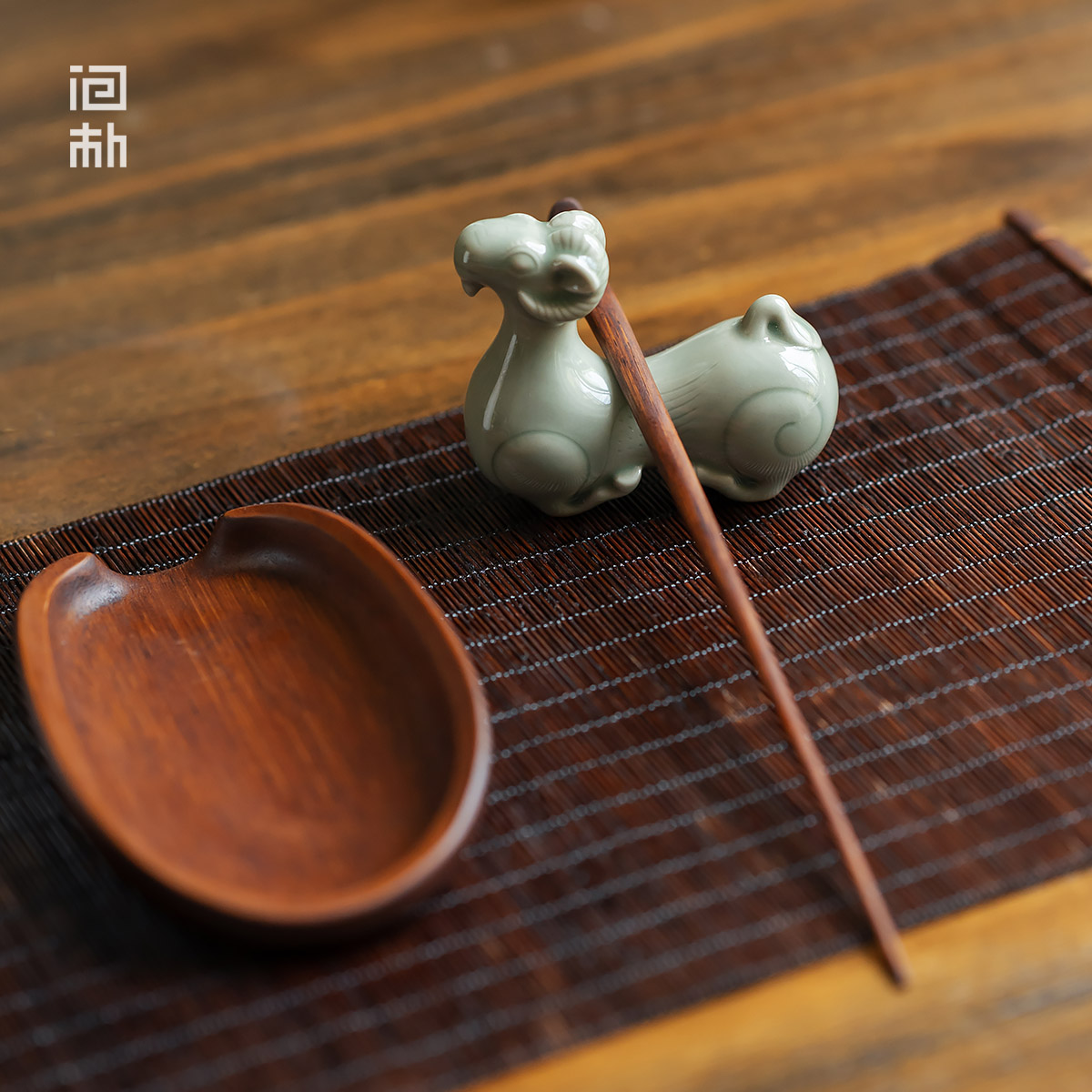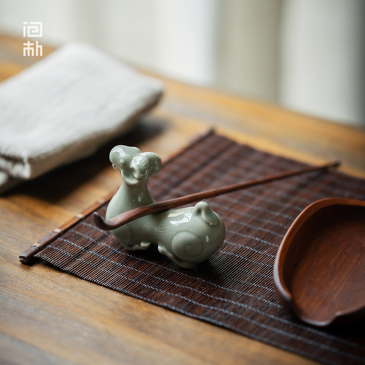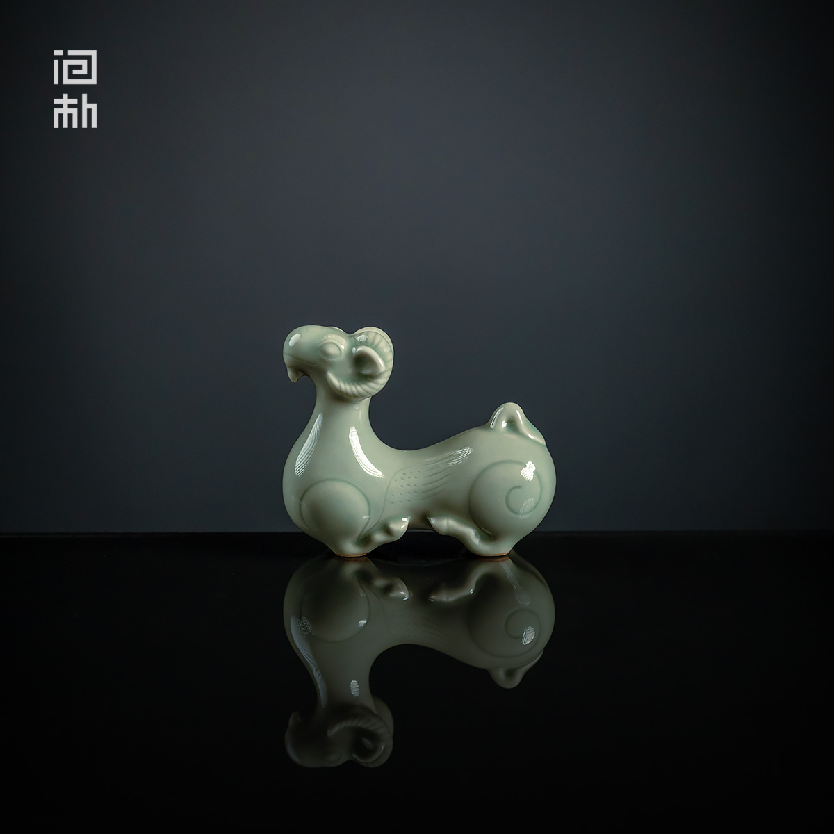 问朴 原创越窑青羊茶宠桌面摆件 纯手工笔架笔搁茶针茶拨搁置