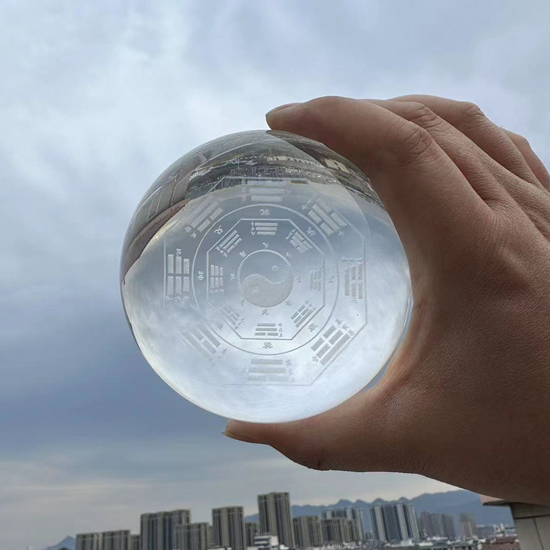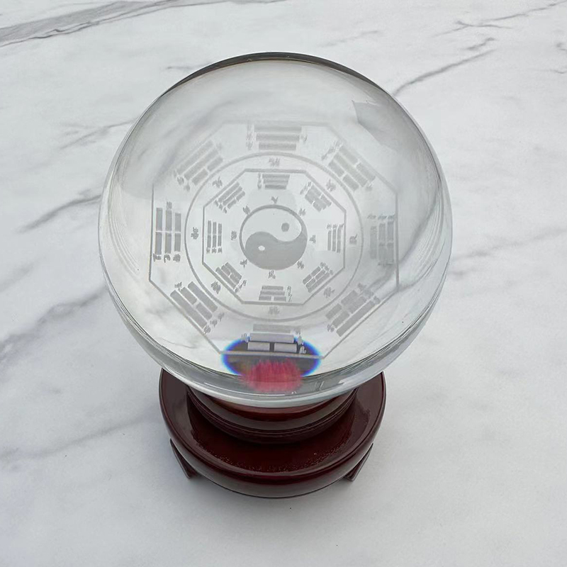 纯手工太极八卦水晶球摆件内雕乔迁居家装饰卧室客厅玄关桌面办公