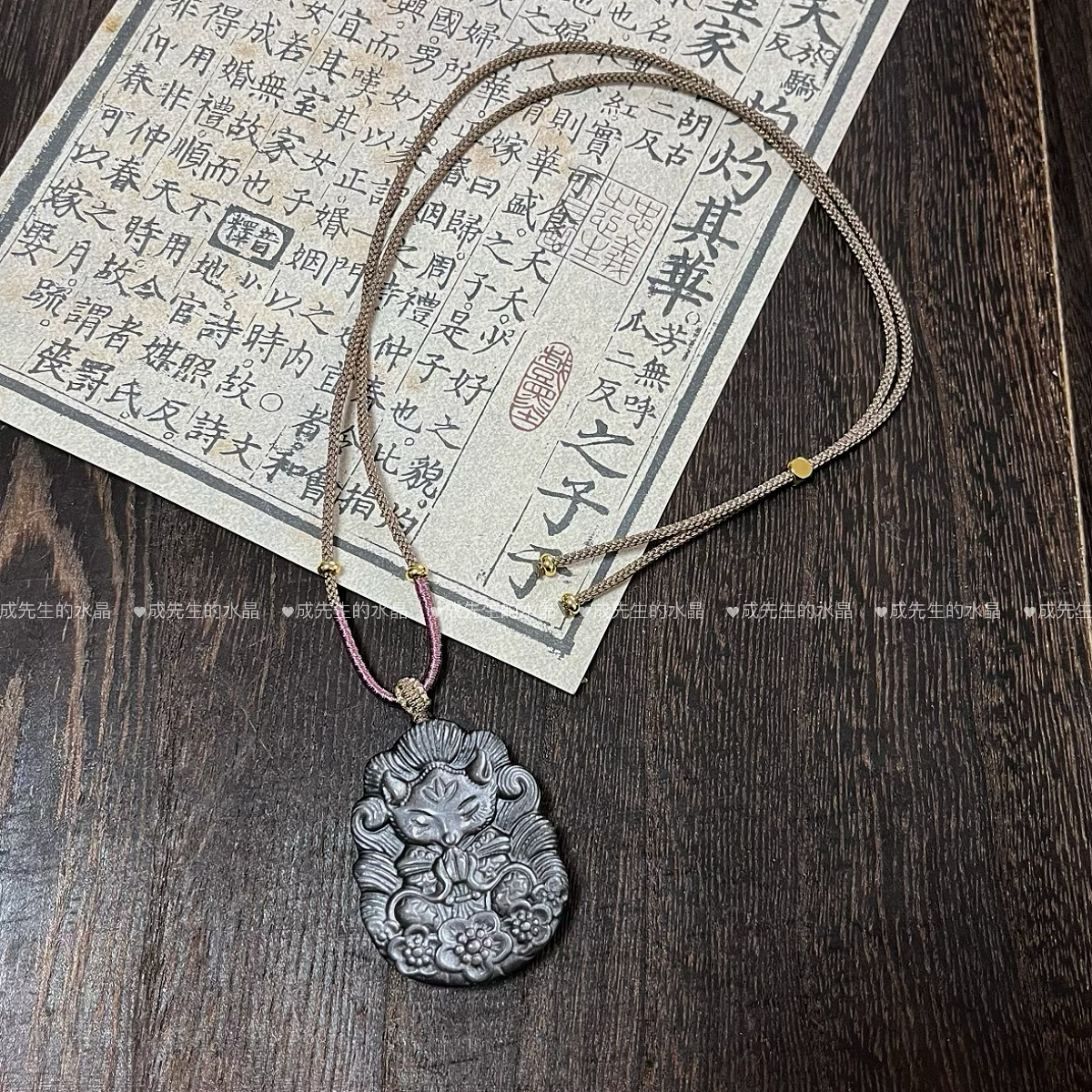 天然黑曜石九尾狐吊坠银曜石水晶狐狸项链狐牌锁骨链许愿狐将军狐