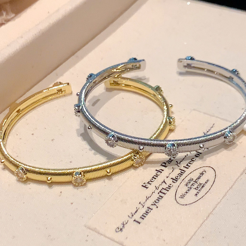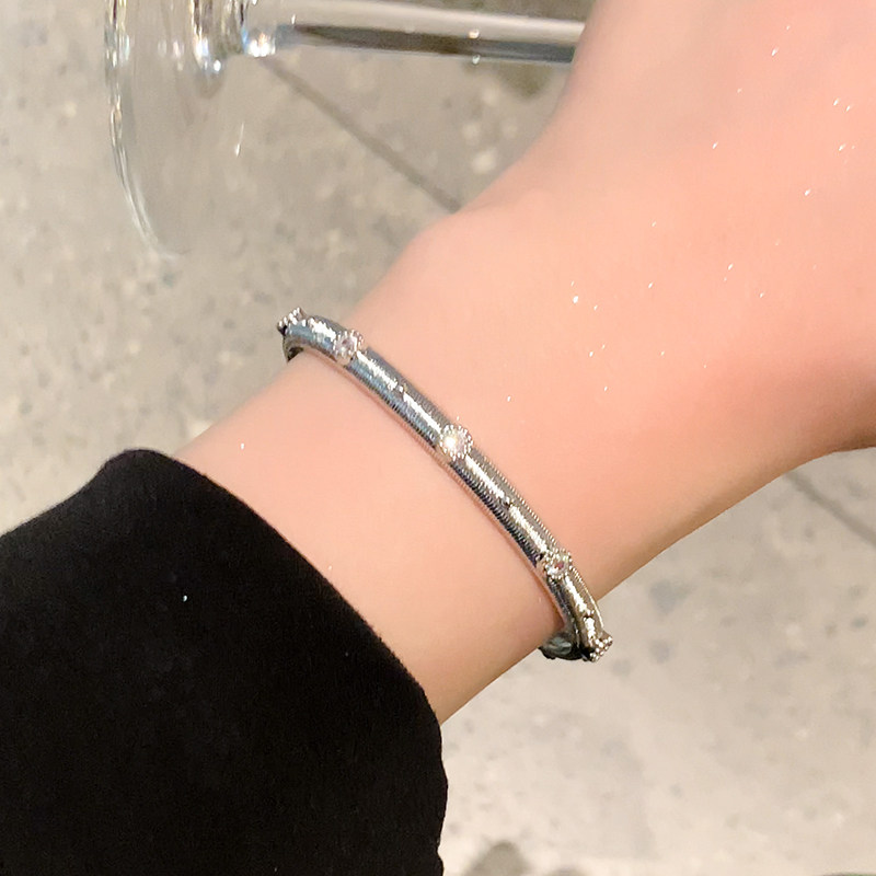 法式宫廷拉丝水晶手镯女高级感手环银手镯女款复古手链镯子手饰品