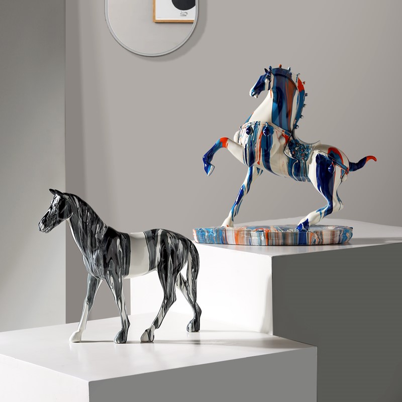 现代淋色彩马摆件客厅玄关办公室书房桌面装饰招财W新居创意摆设