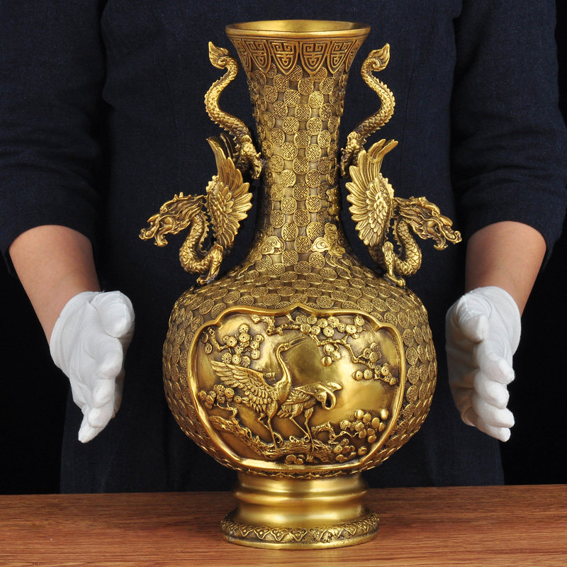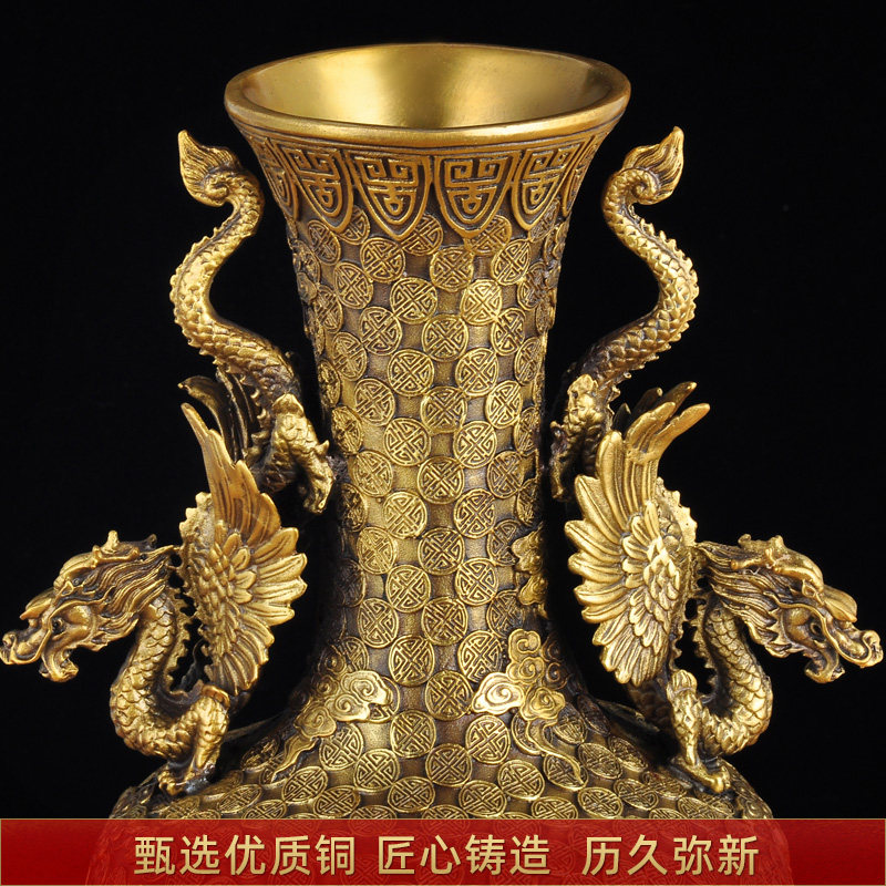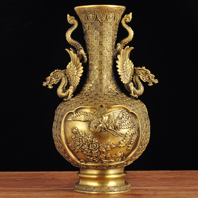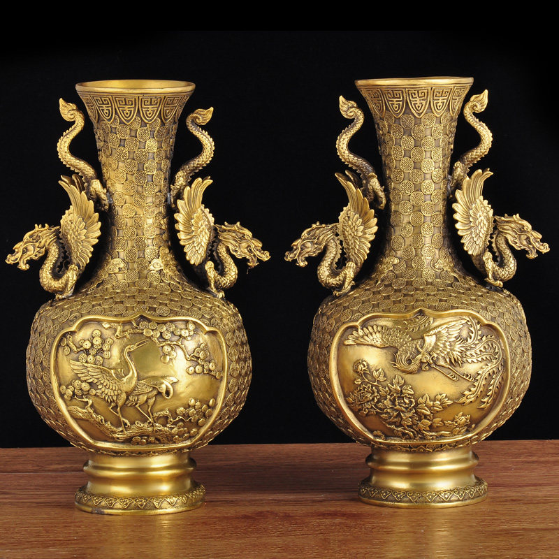 铜花瓶摆件家居客厅中式龙凤花器送闺蜜结婚礼物工艺品商务礼品
