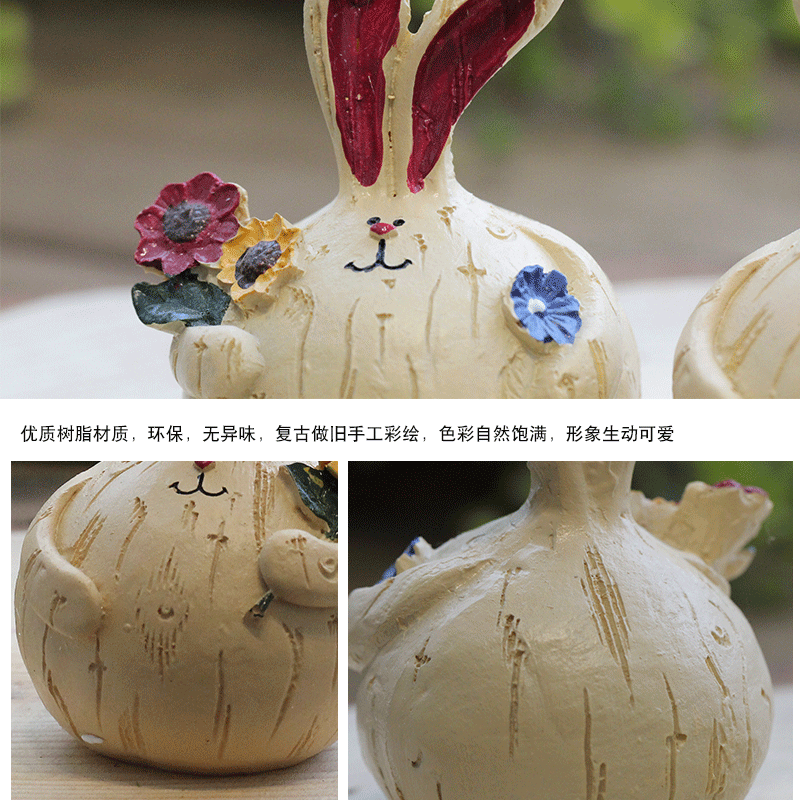 创意家居树脂可爱胖兔子装饰品摆件客厅电视柜复古工艺品摆设礼物