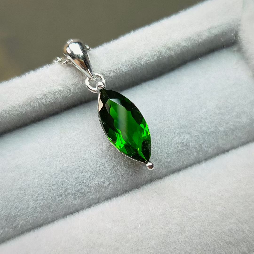 天然透辉石吊坠重量1.73克拉尺寸6*12mm马目形晶体干净正宗铬绿色