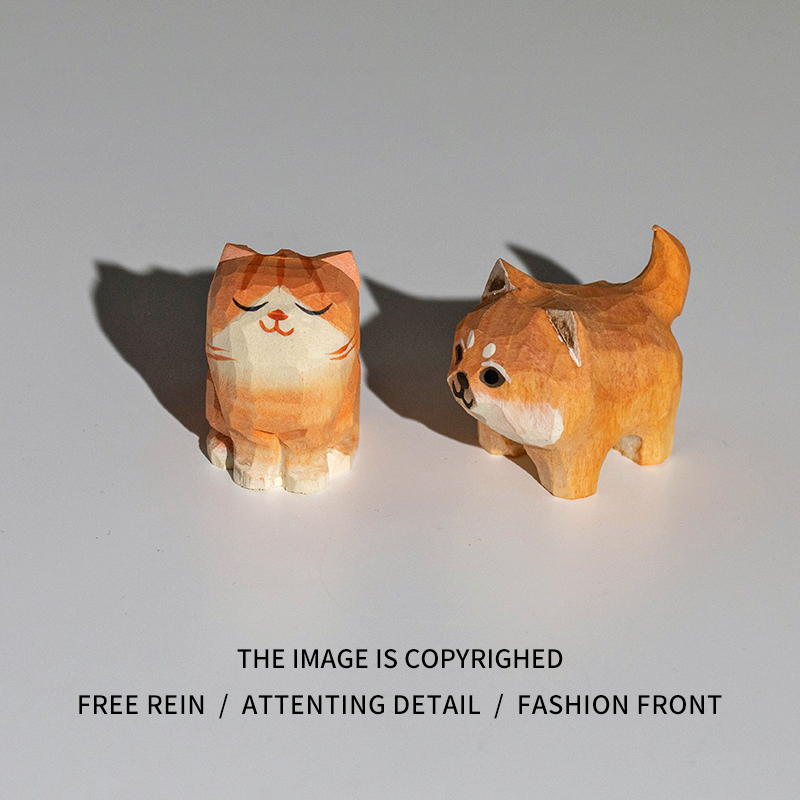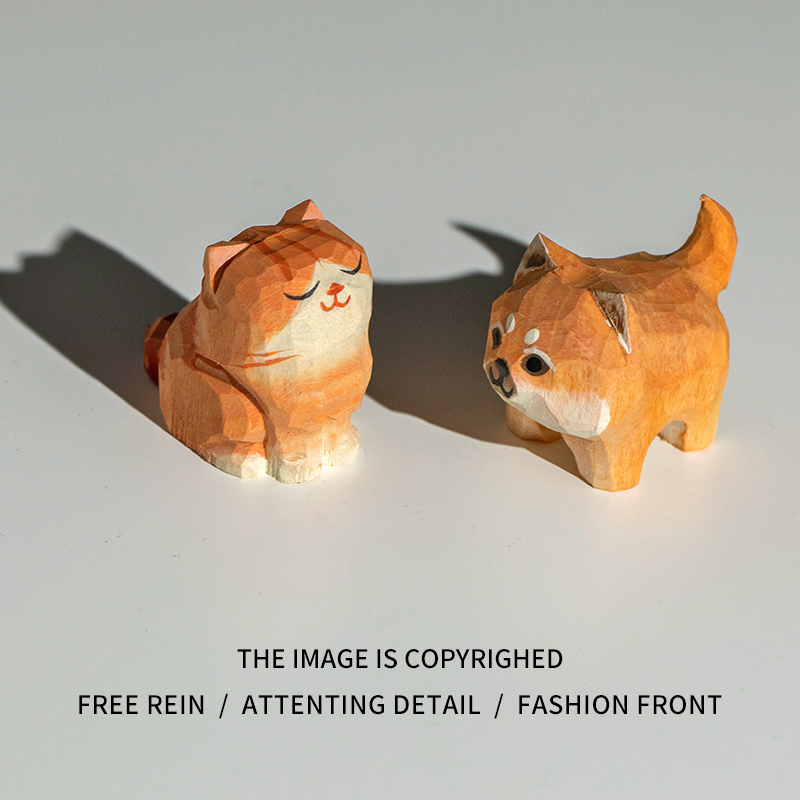 送TA一对小猫小狗!橘猫手工木雕柴犬桌面创意摆件治愈系好物礼物