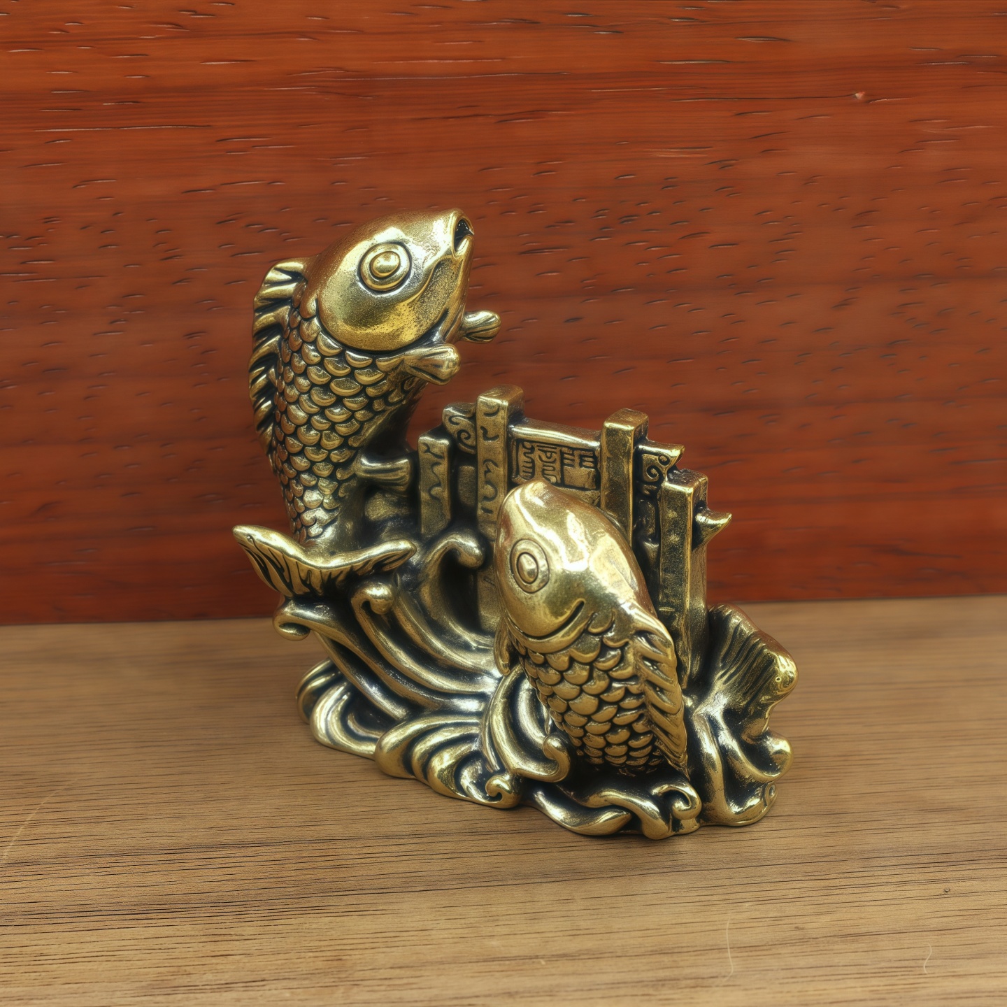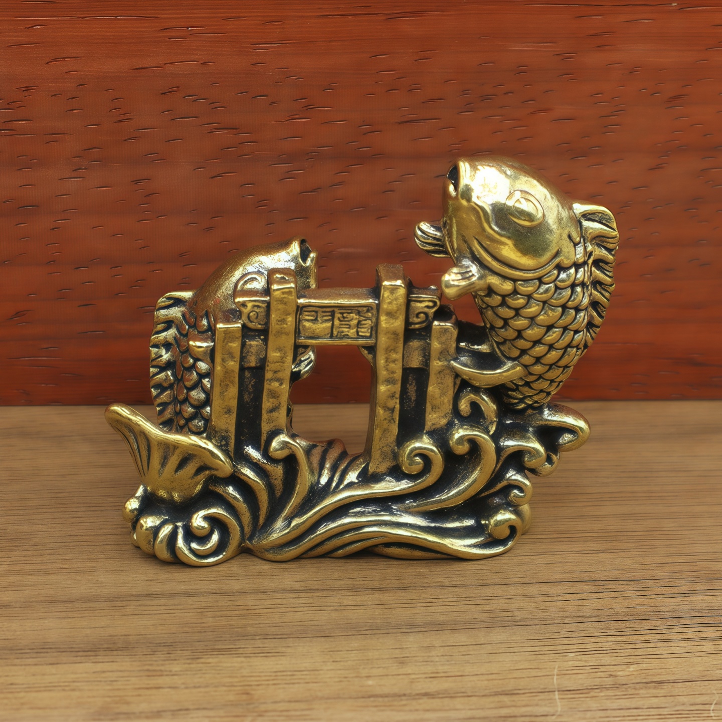 黄铜鱼摆件鲤鱼跃龙门家居办公室茶宠装饰工艺品年年有余桌面摆设
