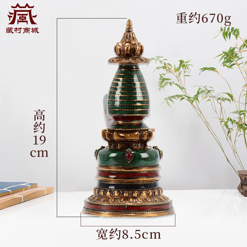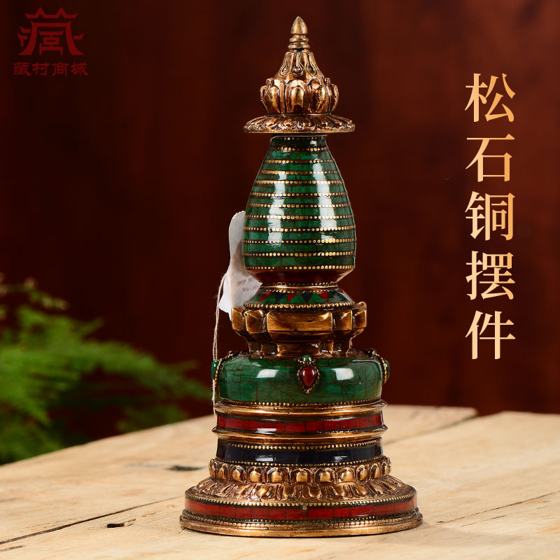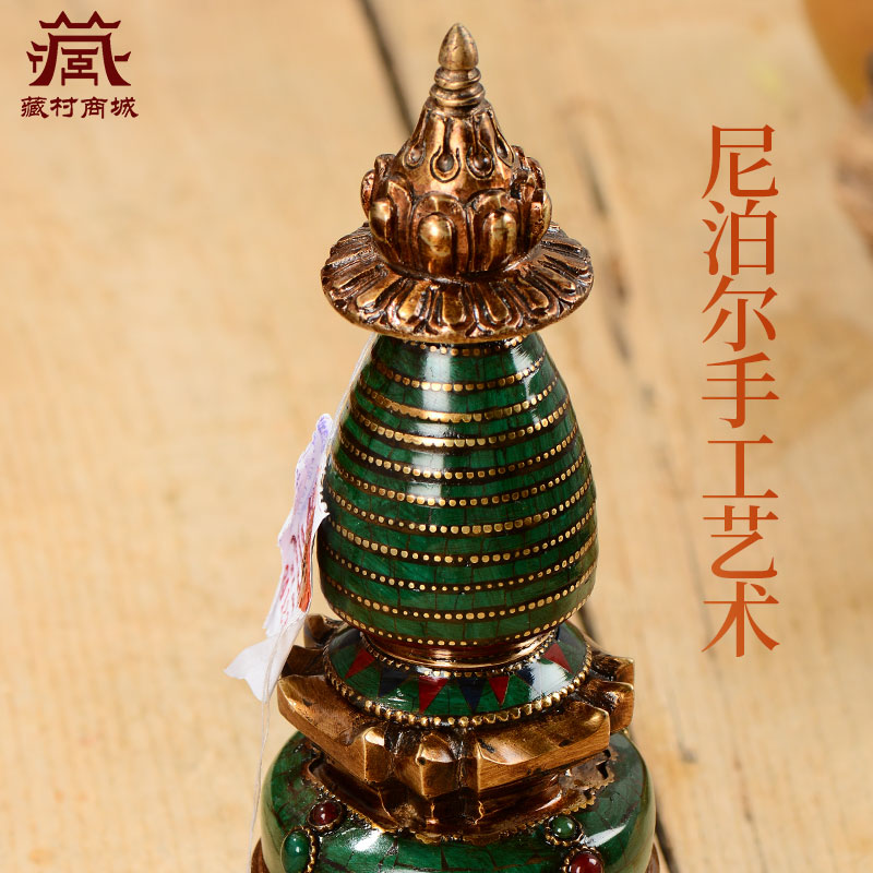 尼泊尔手工松石镶嵌噶当塔家用菩提塔宝石镶嵌舍利塔佛塔摆件