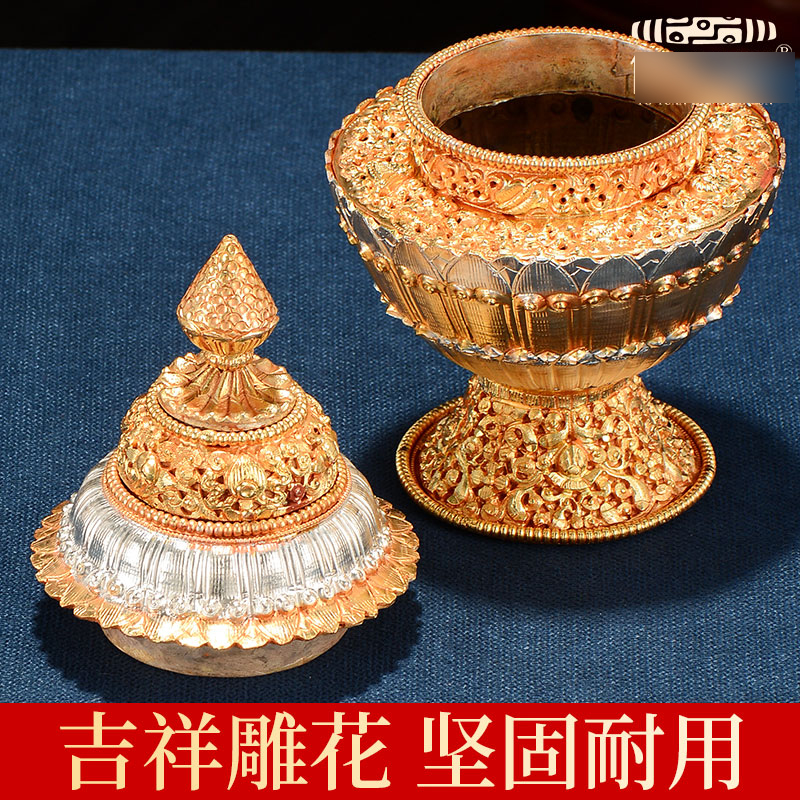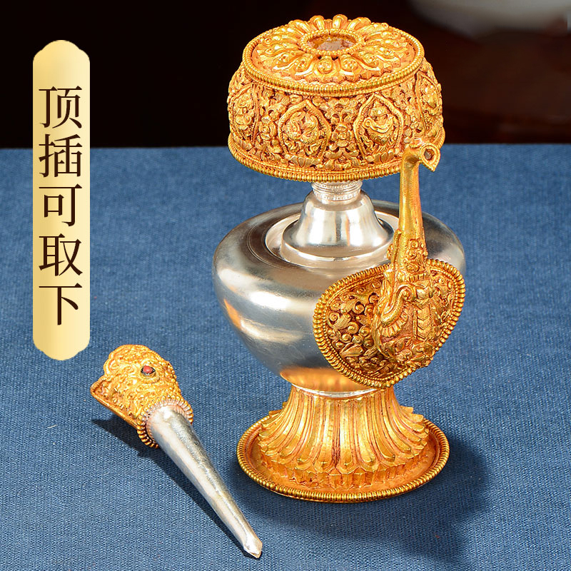 尼泊尔手工贲巴壶现代灌顶铜鎏金鎏银宝瓶净水瓶奔巴壶摆件