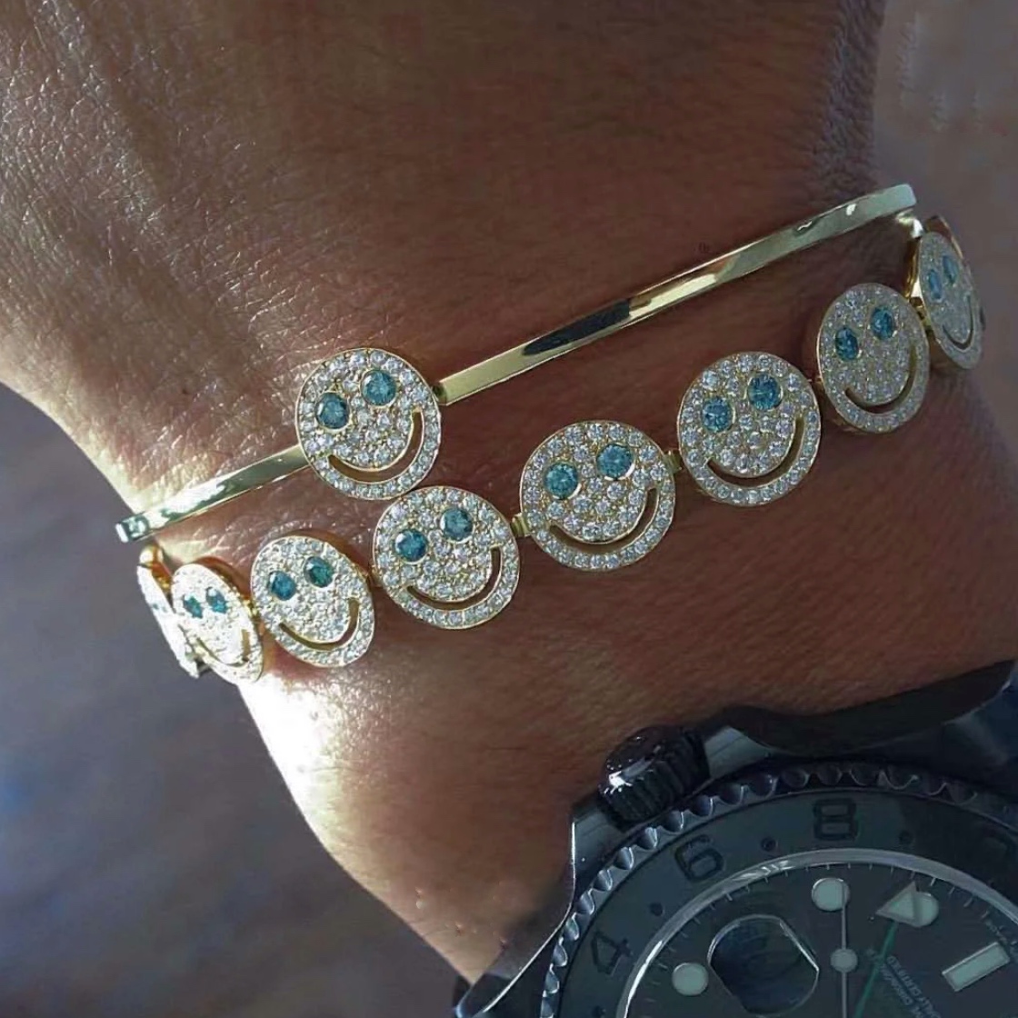 EYEFUNNY风格多笑脸手镯镶嵌钻925纯银镀金日潮嘻哈ins开口调节
