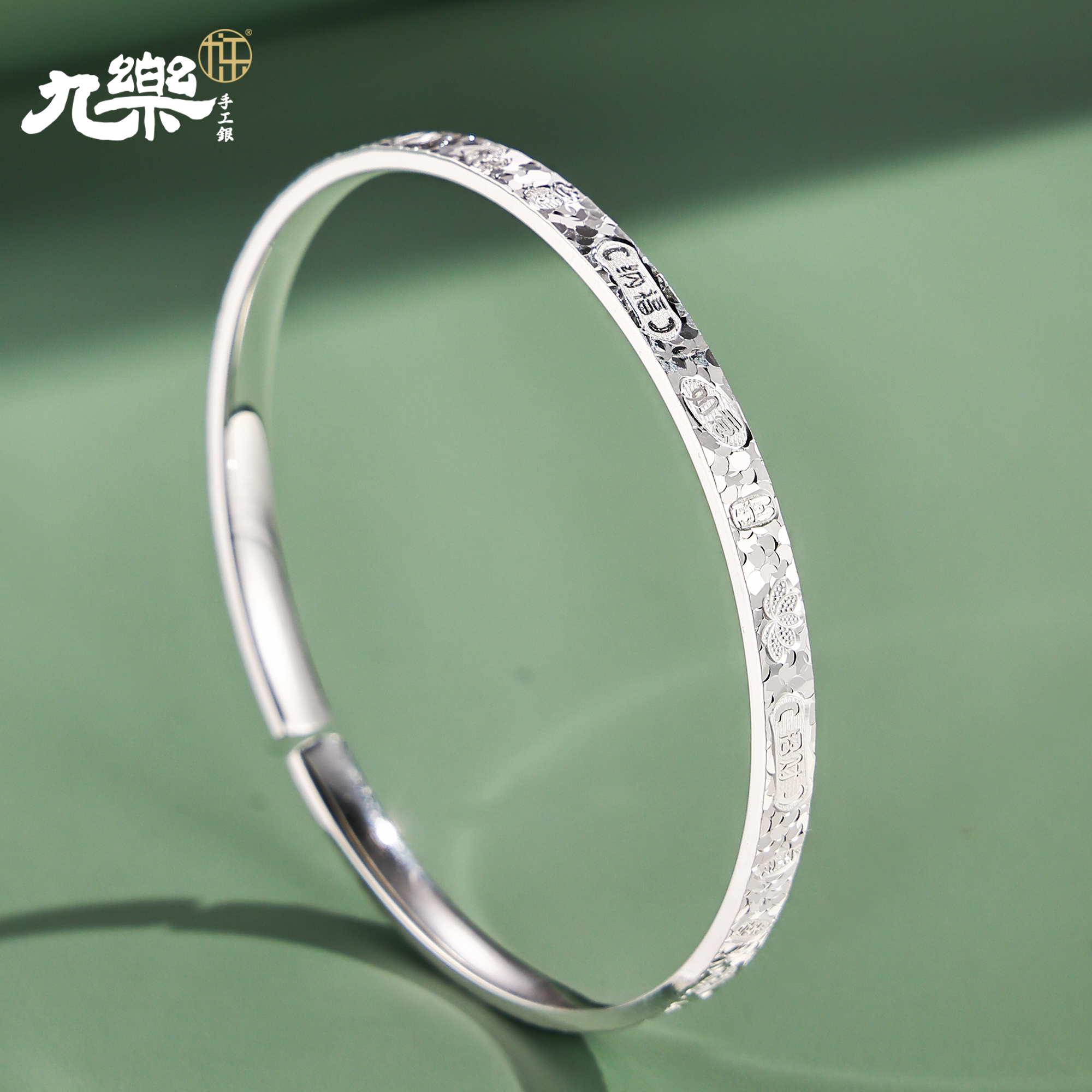 九乐足银999银手镯女金色吉言碎冰冰开口手镯新中式首饰送女友礼