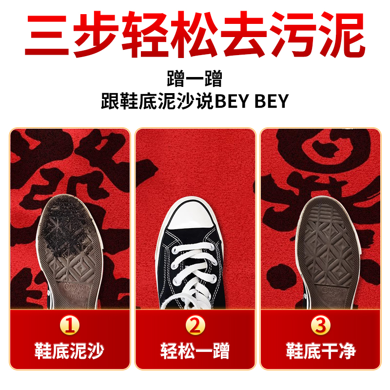 入户门地垫红色丝圈门垫玄关门家用乔迁喜庆地毯踏者生财