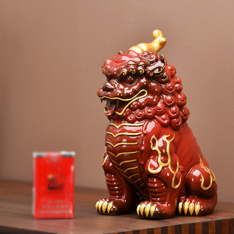 现货速发大号貔貅摆件一对红色陶瓷新中式家居客厅装饰办公室桌面