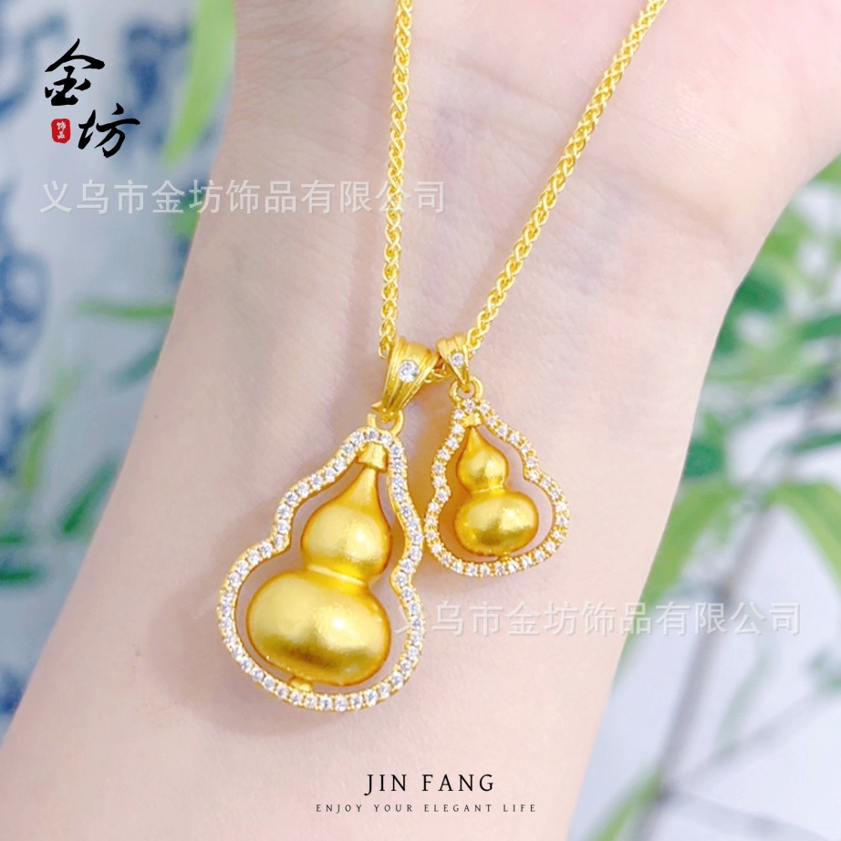 韦雪同款越南沙金项链可旋转镶钻葫芦吊坠叠戴轻奢锁骨链送女友