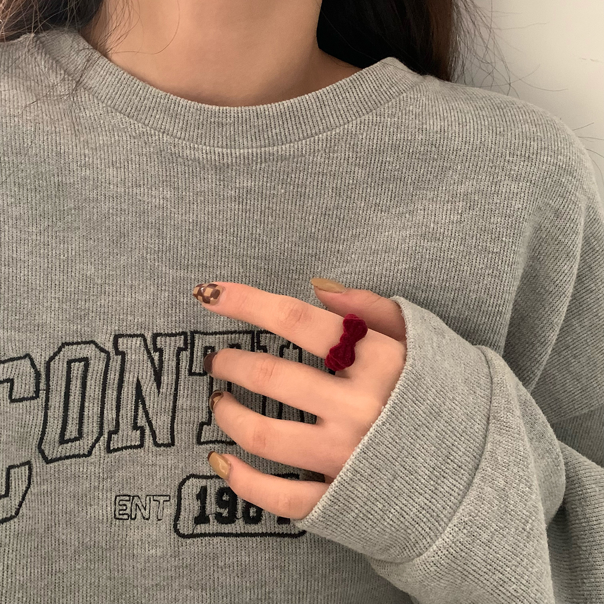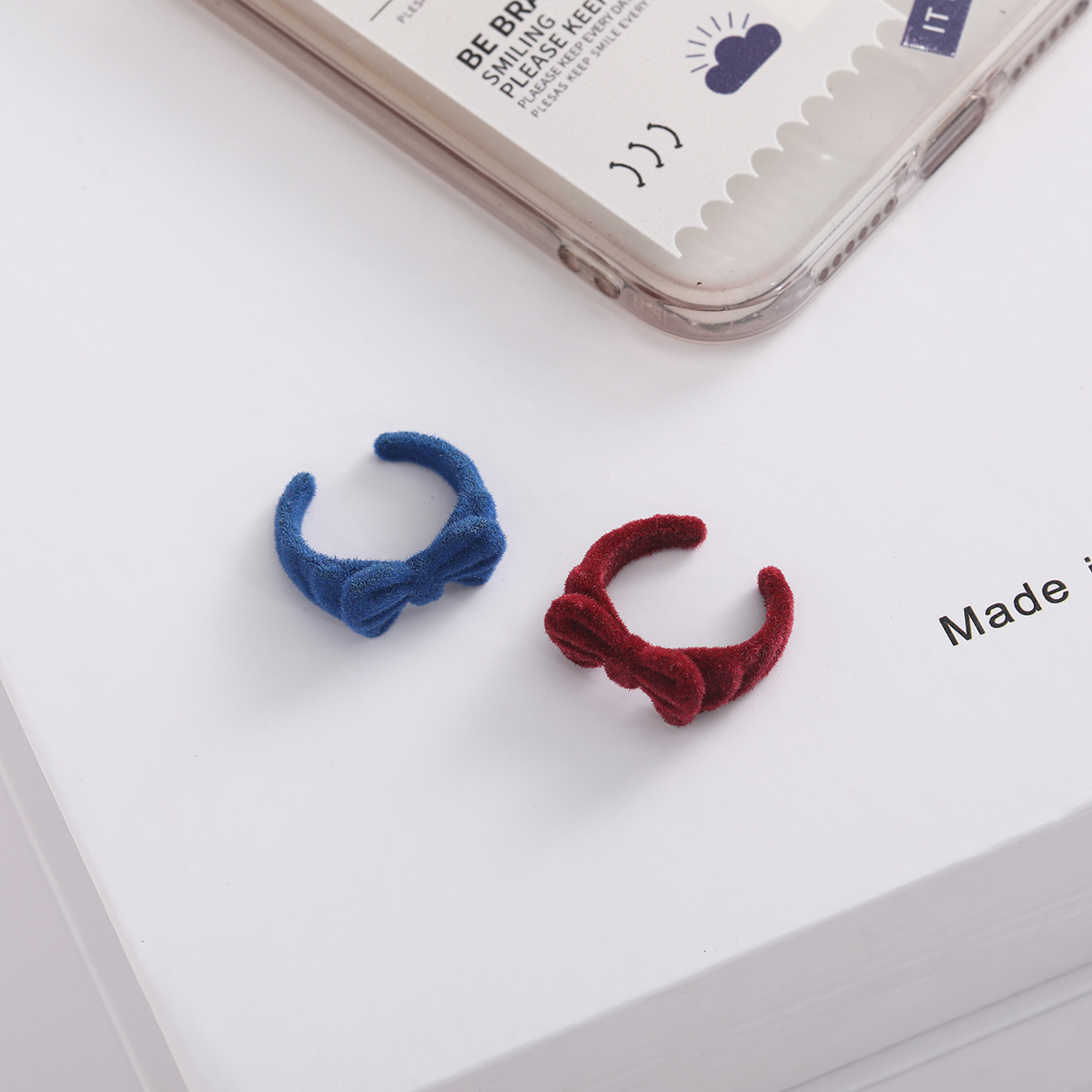 可爱少女感克莱因蓝丝绒戒指复古蓝色蝴蝶结开口戒指女圣诞食指戒