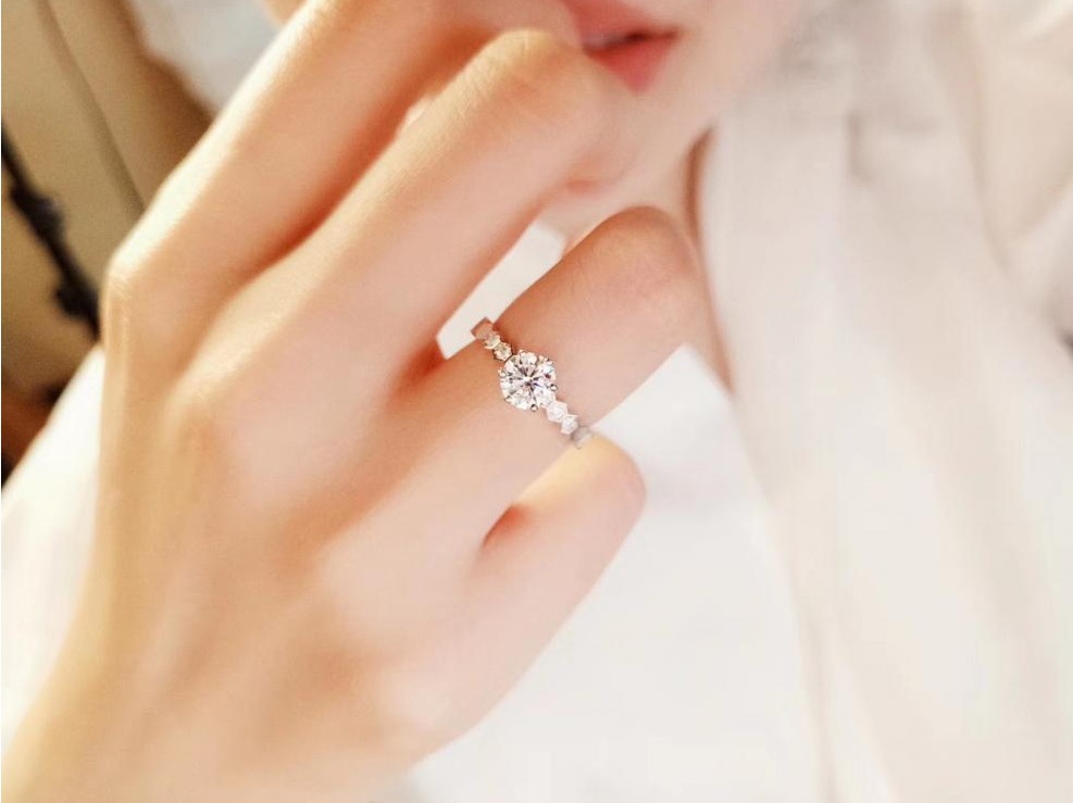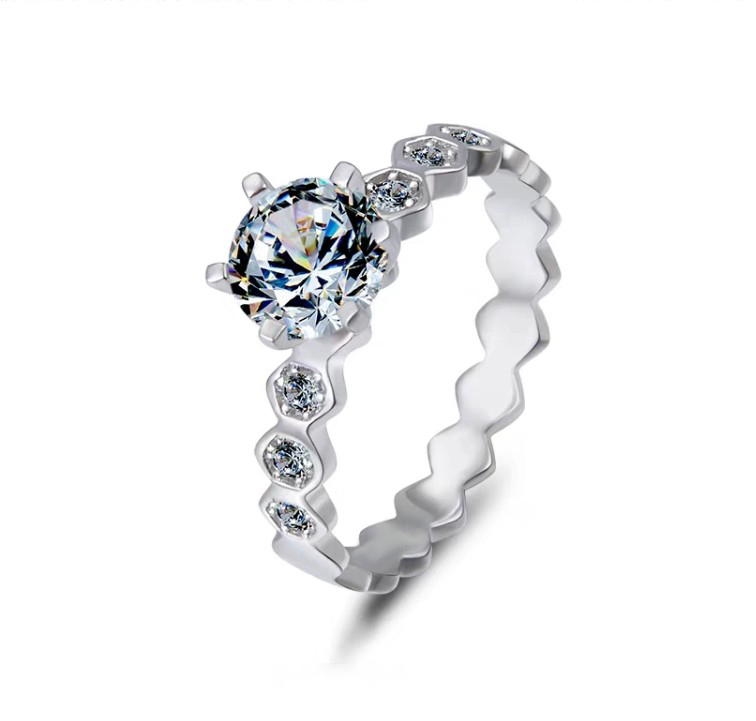 宋慧乔同款轻奢六边形蜂窝蜂巢D色莫桑石钻戒指网红pt950铂金带钻